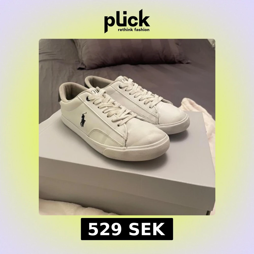 Säljer ett par vita läder skor från Polo Ralp Lauren i storlek 38. Dom är väl använda men är i hyfsat skick