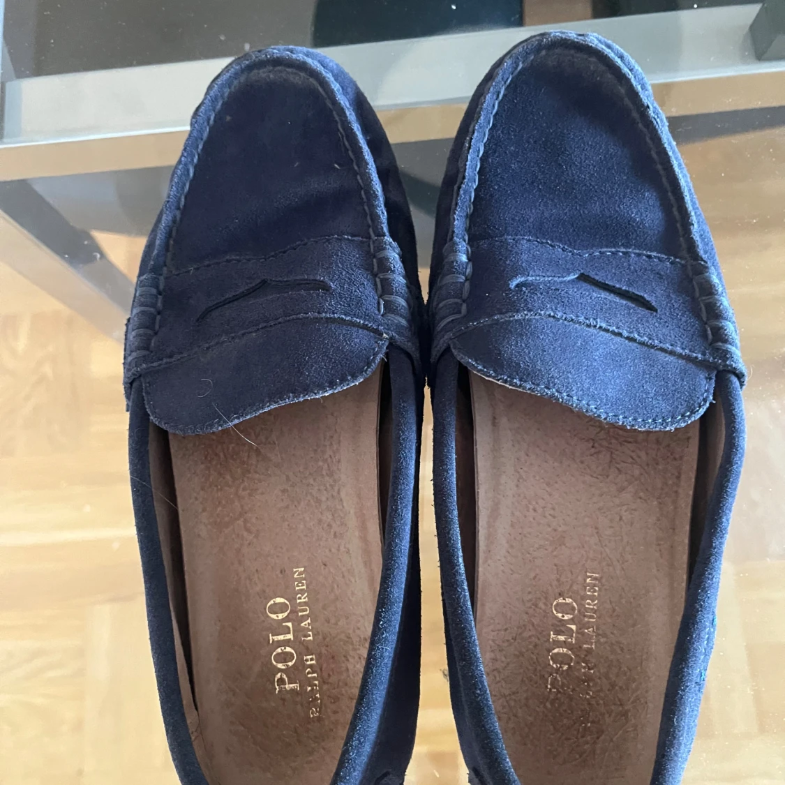 Snygga mörkblå loafers från Polo Ralph Lauren i mjuk mocka. Storlek 42