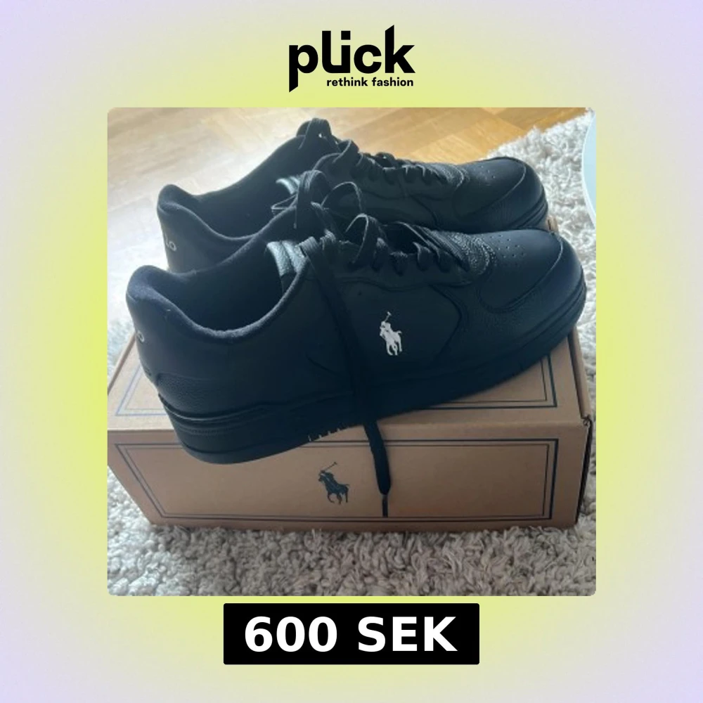 Stilrena, oanvända svarta sneakers från Polo Ralph Lauren med klassisk logga i vitt på sidan och Polo-tryck på hälen. Vid frågor är det bara att höra av dig!😁 (Aldrig använda)