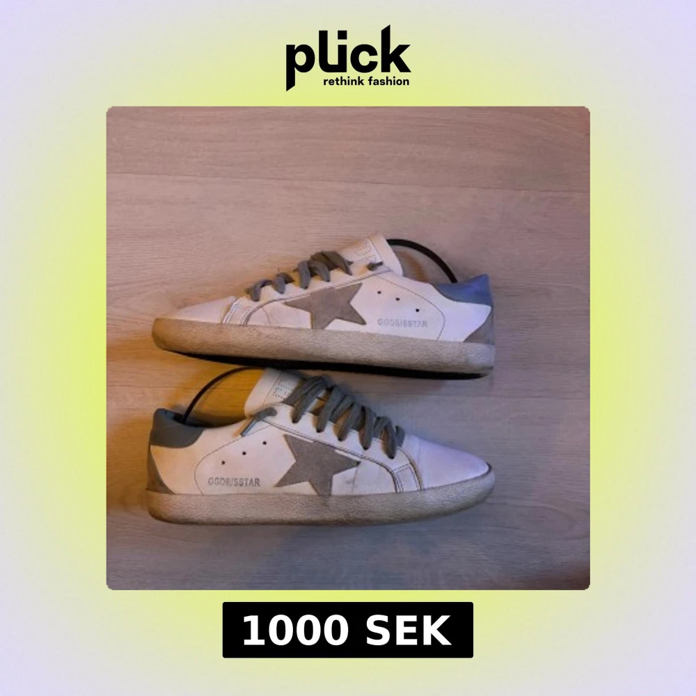 Säljer dessa snygga golden goose. Perfekt nu till sommaren eller vilken årstid som helst. Köpt på Plick så kan inte garantera att dom är riktiga. Skick 8/10 då texten har blivit lite fadead där back men det syns knappt. Skick dm för frågor. Fraktas inom 48 timmar. Pris är självklart diskuterbart😀