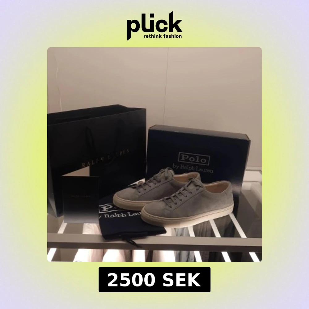 Helt oanvända snygga grå sneakers från Polo Ralph Lauren i skinn. Skorna har en stilren design med snörning och en vit sula. Perfekta för en avslappnad och trendig look. Storlek 44 men känns som 45. Pris kan diskuteras