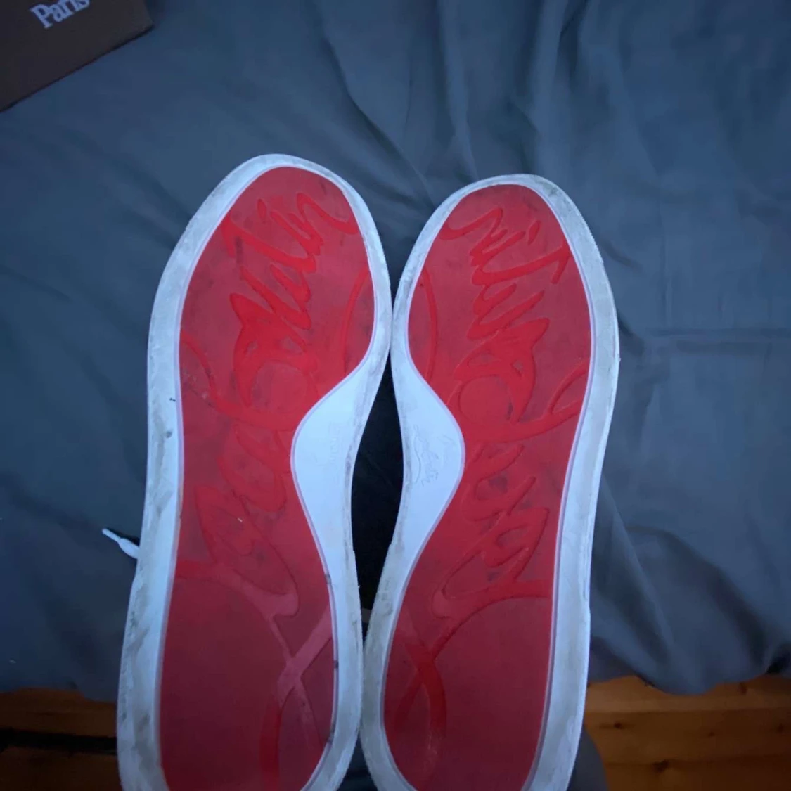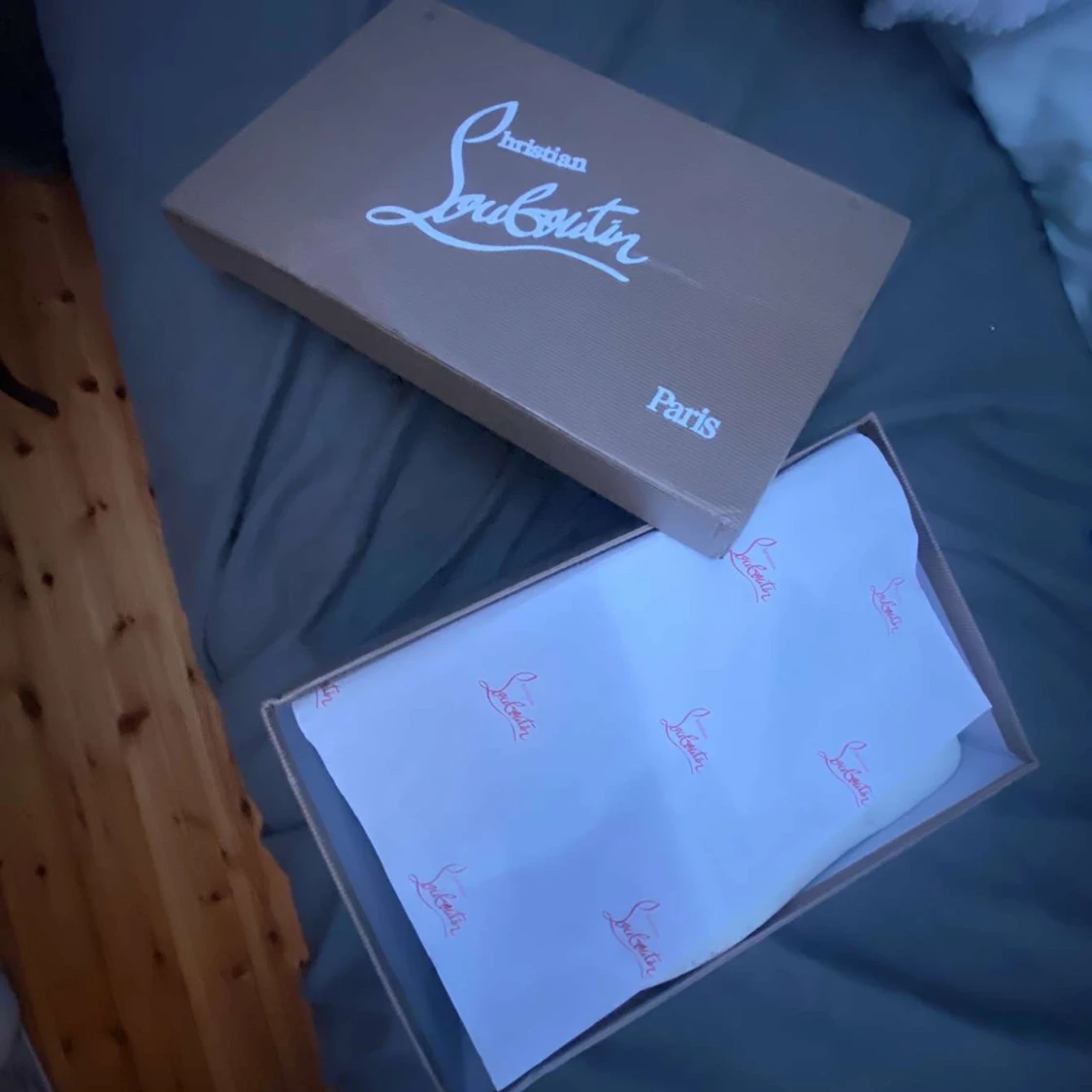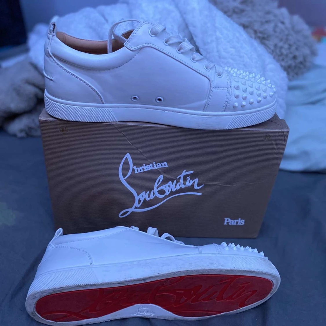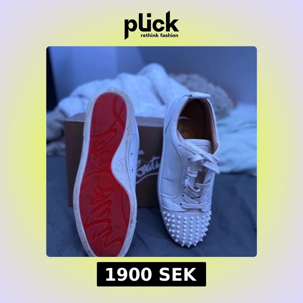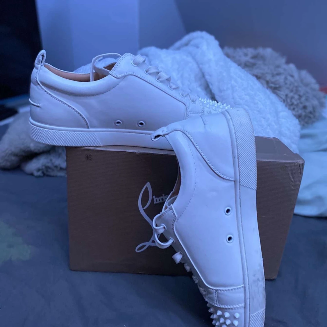 Säljer Vita Christian Loubitins i storlek 46. Köpte i augusti 2024. Inkluderar en tygpåse med skorna , kvitto, och extra spikar (se bild). Kan gå ner i pris vid snabb affär, kom pm för extra bilder.