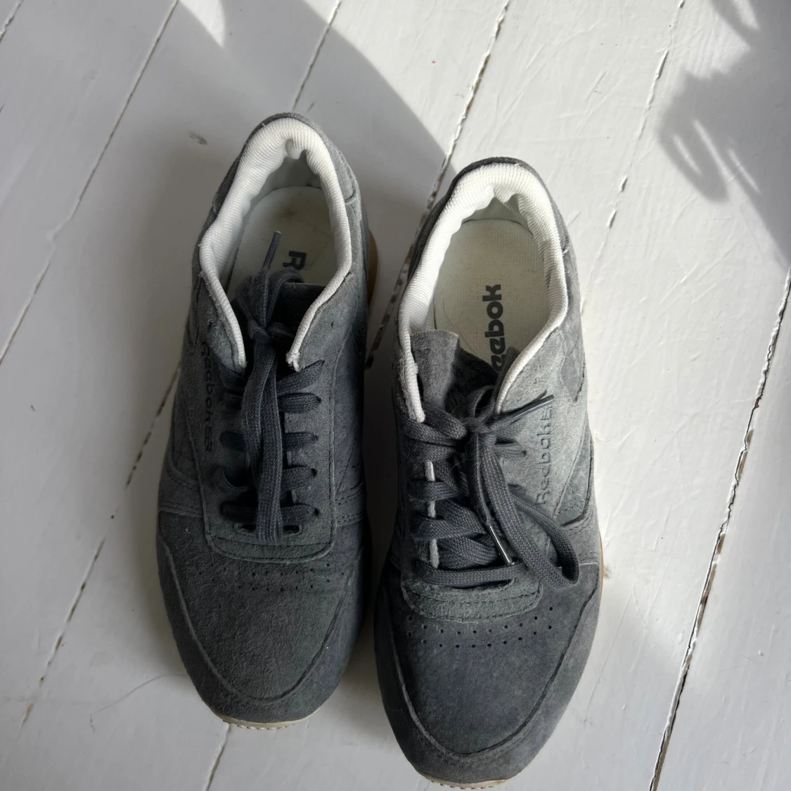 Snygga grå sneakers från Reebok i mjuk mocka💕 Knappt använda!