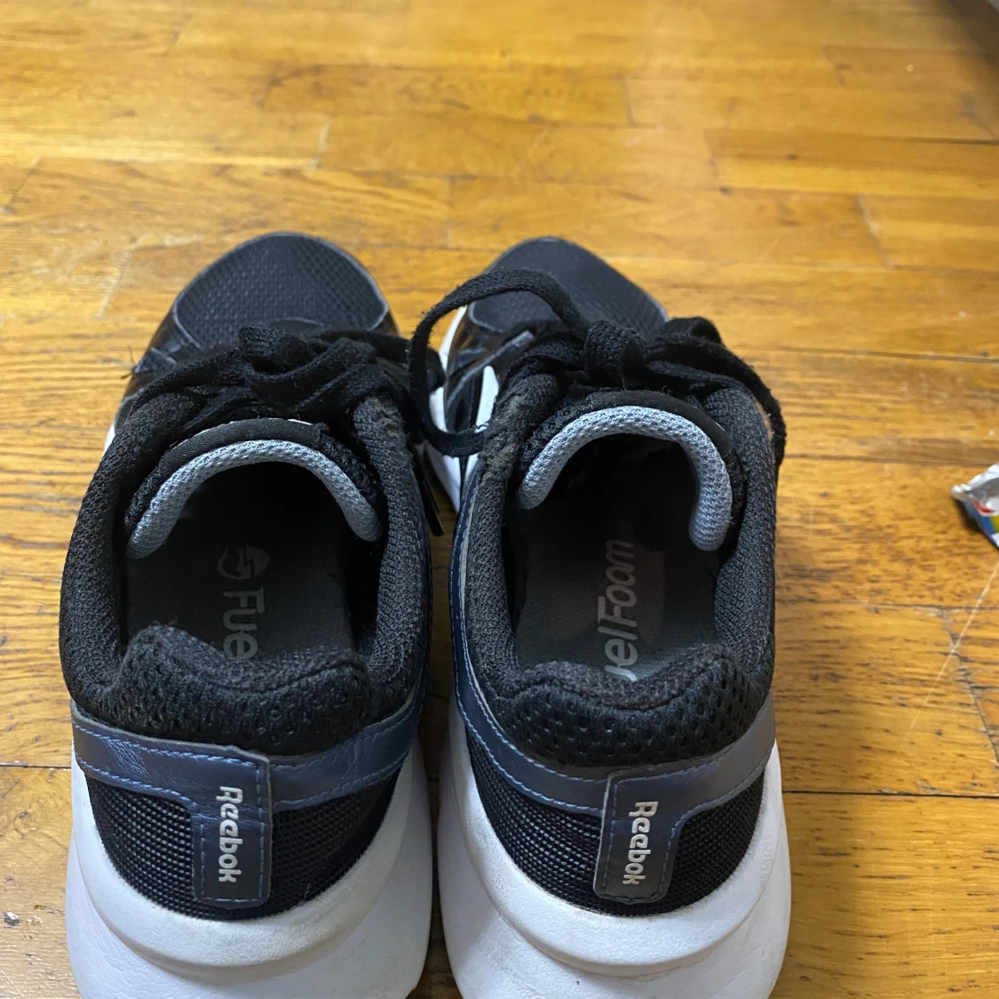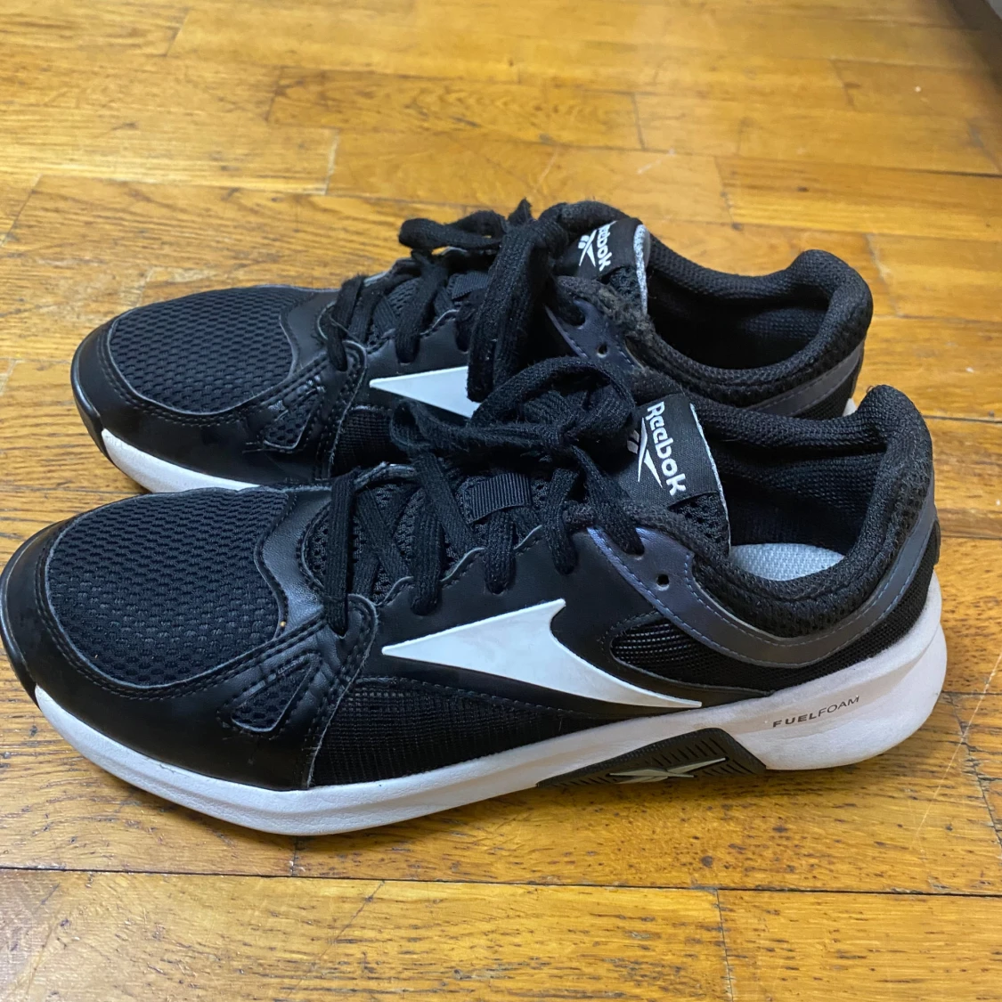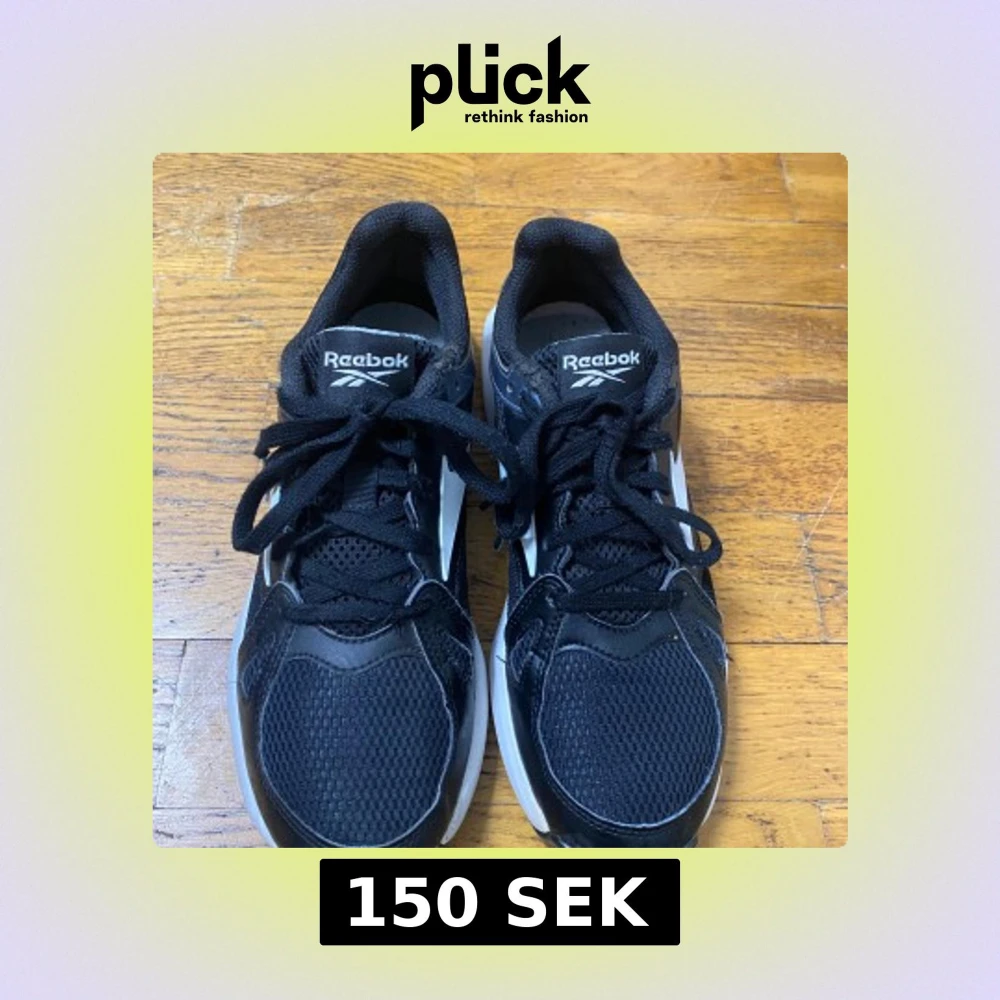 Hej! Jag säljer ett par Reebok löparskor i storlek 38,5. De är i svart och vitt med Reebok-loggan på sidan och tungan. Sulorna är vita med svarta detaljer. De är i bra skick och perfekta för löpning eller som vardagsskor. Hör av dig om du är intresserad eller har några frågor