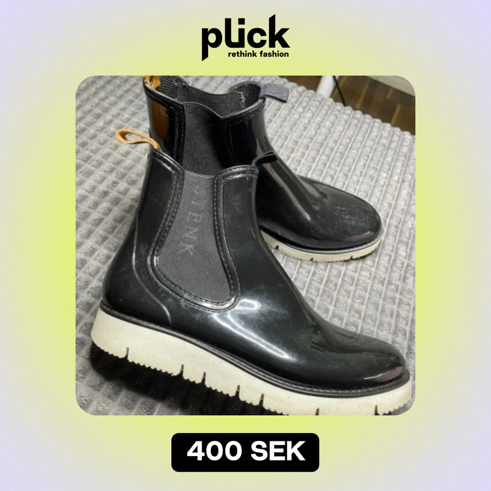 Regn skor som är köpta ifrån scorett ej använda de va för små för mina fötter men kunde inte lämna tillbaka fanns inte i min storlek annars jätte fina, stiliga kommer inget vatten in ifrån skorna perfekt inför vintern
