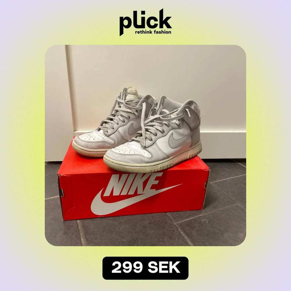 Nike Dunk Hi retro ”vast grey” i använt skick men har mycket kvar att ge. Dem är i storlek 42,5 (US 9)