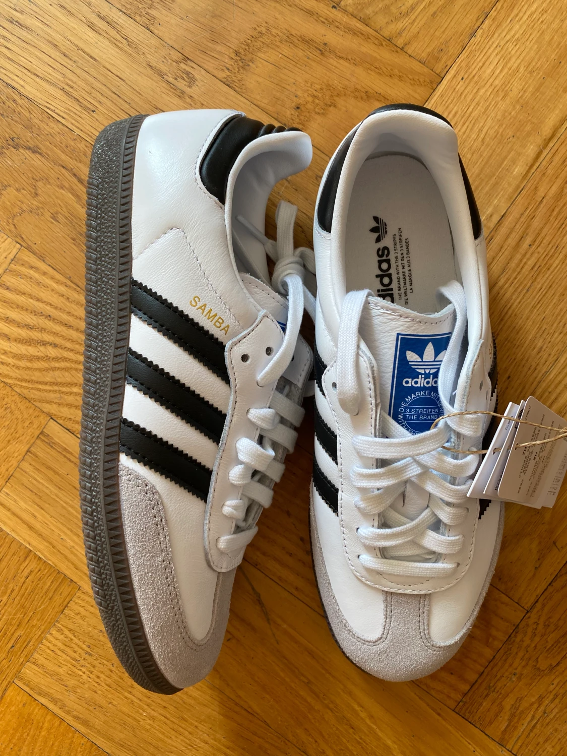 Säljer dessa trendiga, helt oanvända Samba OG. Lappen sitter kvar och de kommer i sin kartong. Säljes då de tyvärr inte passar mig. Typ omöjliga att få tag på! Dessa är i storlek 38 och jag skulle säga att de är något små i storleken.