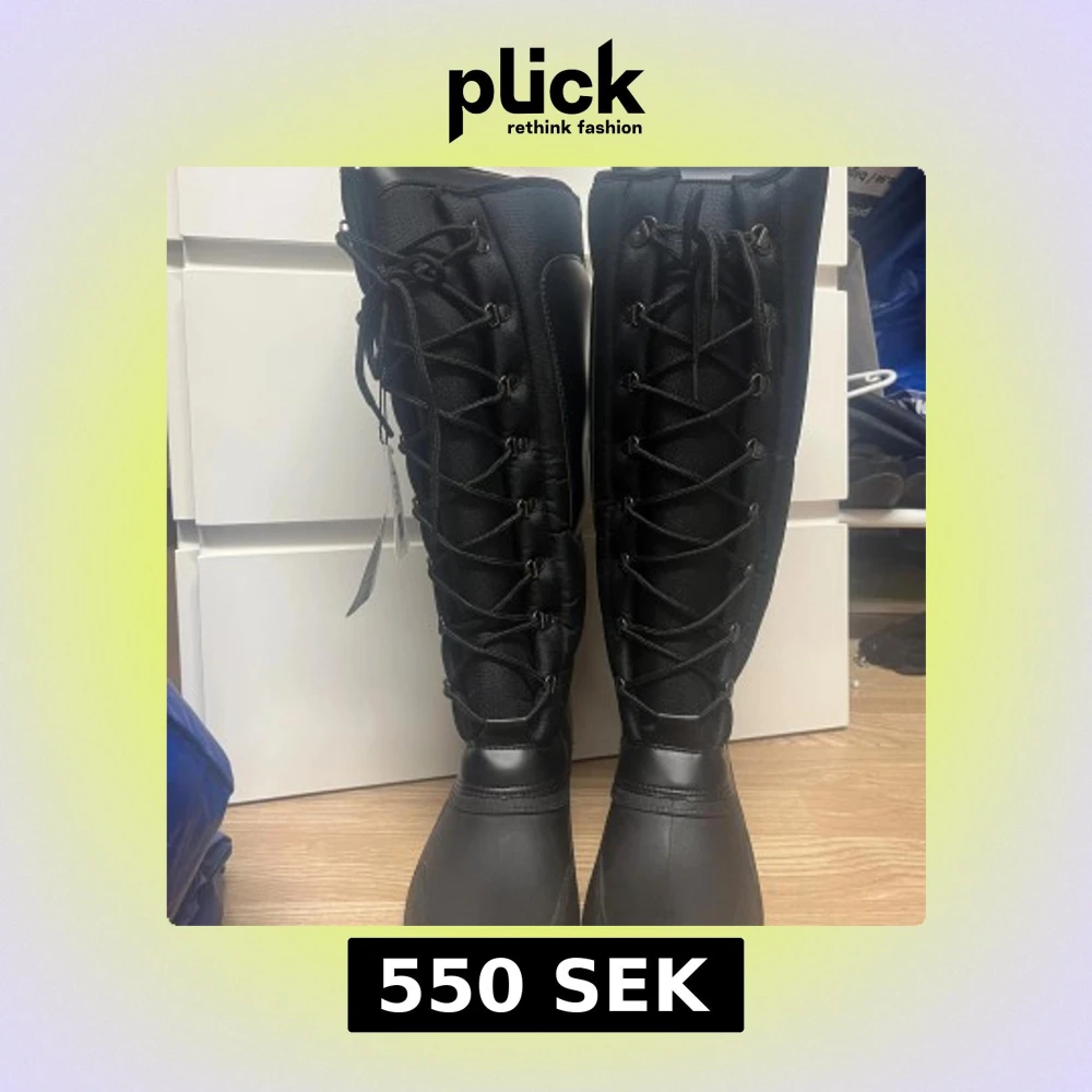 Säljer ett par höga svarta ridstövlar med snörning framtill och dragkedja på baksidan. Stövlarna är helt nya med prislapp.. Perfekta för dig som vill ha både stil och funktion i stallet. Ena dragkedjan dvs ” dragkroken ” man tar tag i har gått av från ena sidan på högra stöveln. Kan gå att lösa med antingen ny drag grejs eller så kanske det behövs bytas dragkedja helt. Normal i storleken men långa. Vid fler bilder eller frågor, kontakta mig 🤗🙋🏼♀️