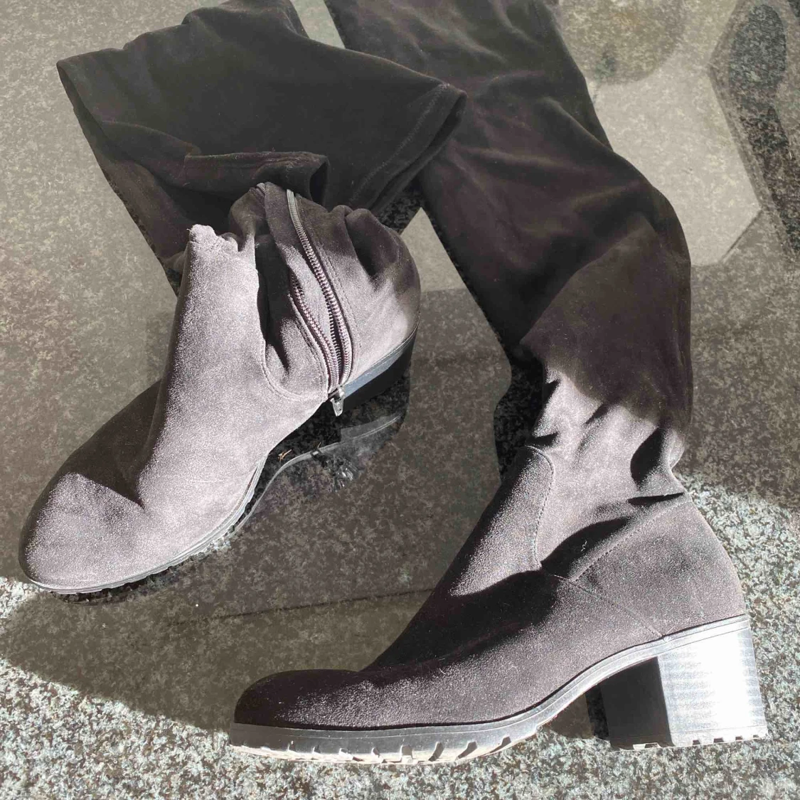 Stövlar som går över knäna. Endast använda en kväll. Passar mig som har 38 i storlek. Kan träffas i centrala Stockholm, eller så står köparen för frakten.