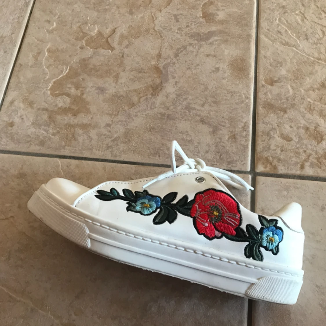 Skor i läderimitation från river island. Använda en gång då de är för små. Köpta förra sommaren