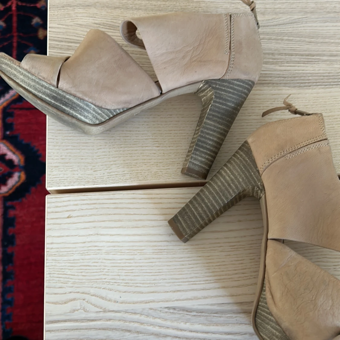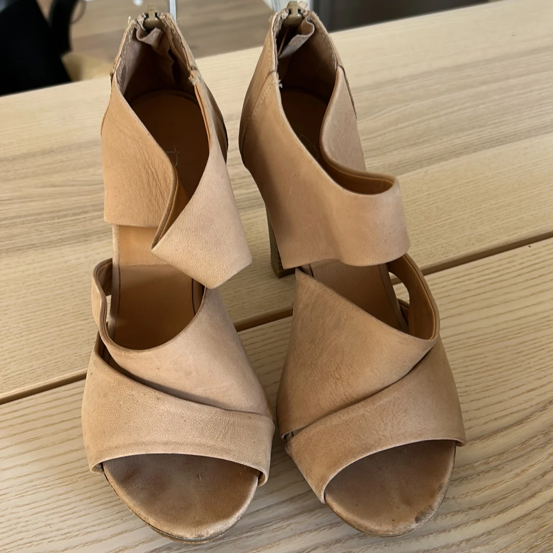 Skinn, snygga sandaletter med cirka 9 cm klack, fina till både jeans och klänning
