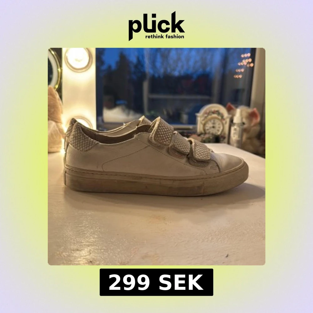 Snygga vita sneakers med tre kardborreband och ormskinnsmönstrade detaljer. Perfekta för en stilren look med en twist. Bekväma och lätta att ta på.