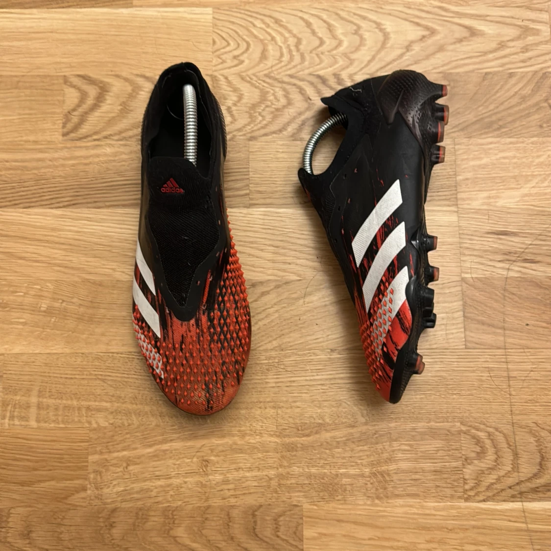 (Adidas predator 20.1) nypris: 2499;- Säljer ett par snygga Adidas fotbollsskor i svart och röd med vita detaljer. De är perfekta för fotboll och har en tight passform för bästa kontroll på planen. Skorna är i nyskick. funkar för konst och naturligt gräs