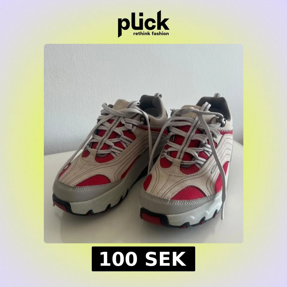 Snygga sneakers från MBT i röd och beige med snörning. Skorna är storlek 35 och 2/3 och välbevarade.