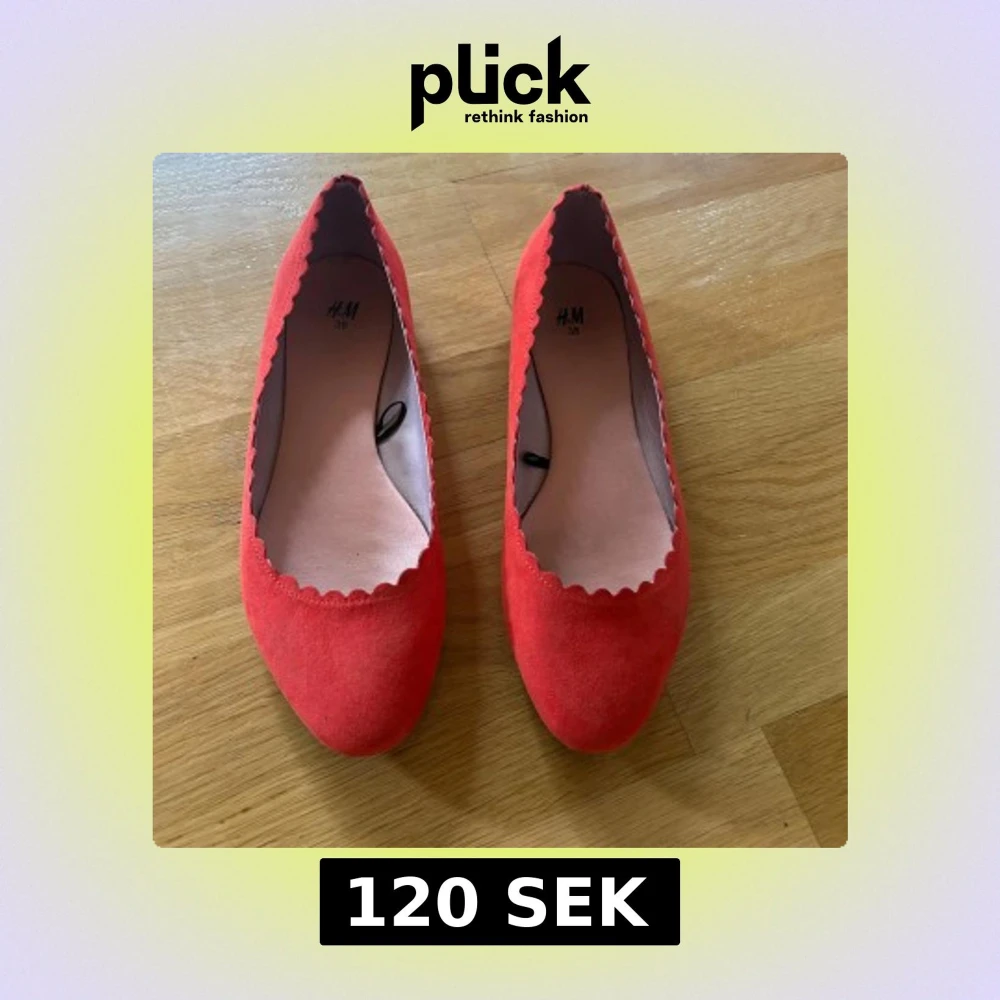 Obs färgen är mer lik den på första bilden💕Snygga röda ballerinaskor från H&M i mockaimitation med vågig kant runt öppningen. Skorna har rund tå och platt sula, perfekta för dig som vill ha en poppig färg på fötterna. Enkla att matcha och superbekväma att bära hela dagen.