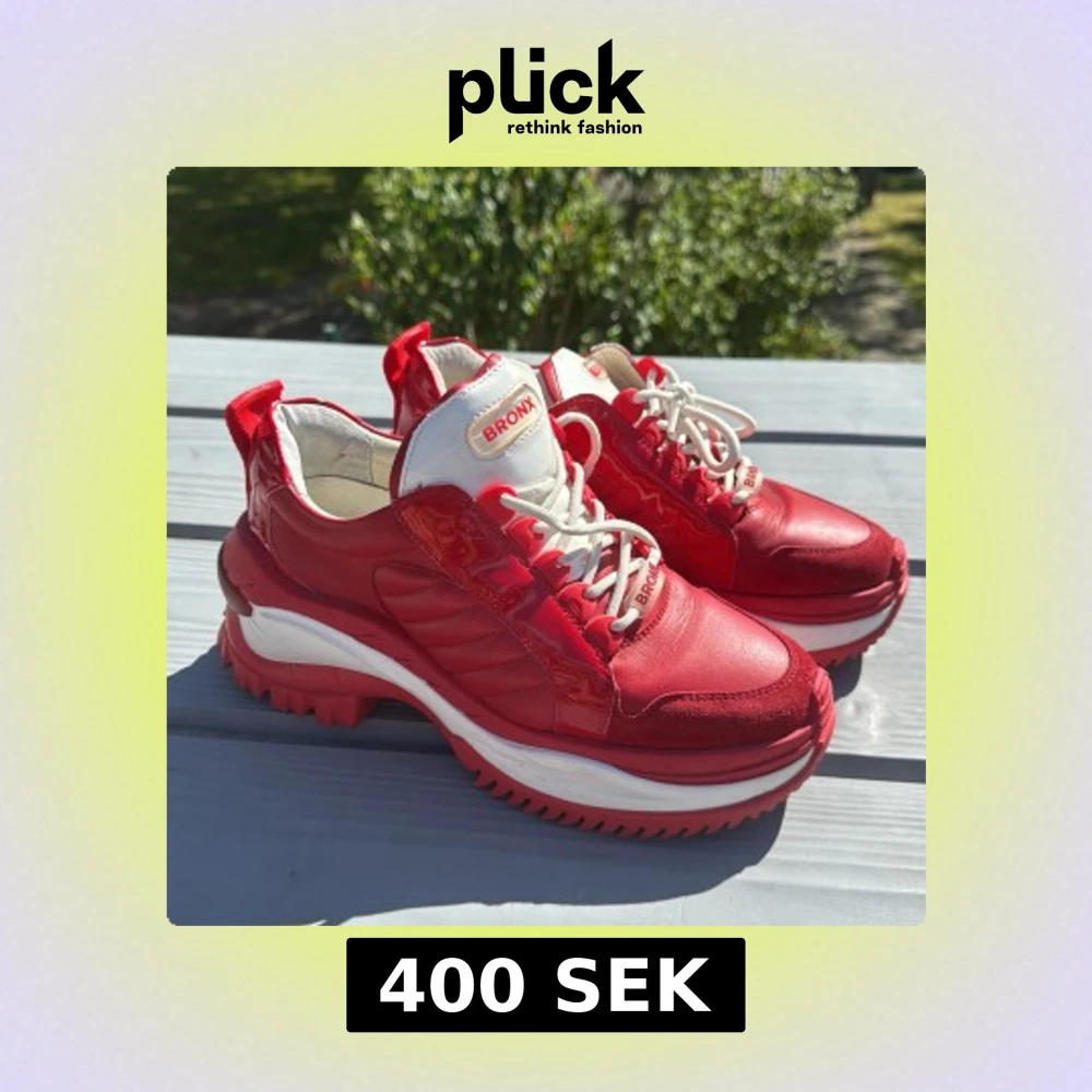 Snygga chunky sneakers från Bronx i rött och vitt med coola detaljer. Ovandelen är en mix av skinn, mocka och glansiga paneler. Tjock vit och röd sula, vita snören och logga på plösen. Perfekta för dig som vill sticka ut med färg och stil.