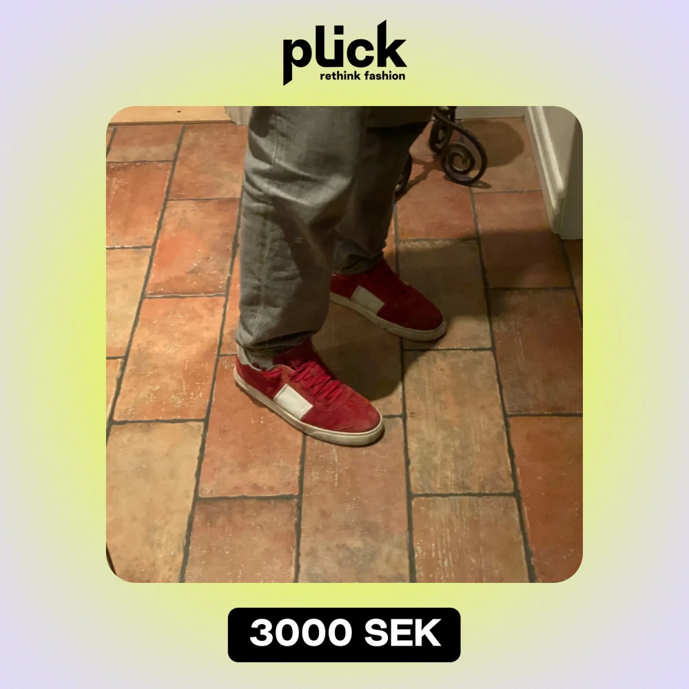 Säljer ett par snygga röda valentino flycrews i mocka med vita detaljer. Storlek 44.5 i mycket använt skick! Slutsålda överallt där dem inte produceras något mer. Sprickor i skon finns därav priset.(stor spricka kolla sista bilden) Snygga som fan som går att använda till både fest och till vardags.