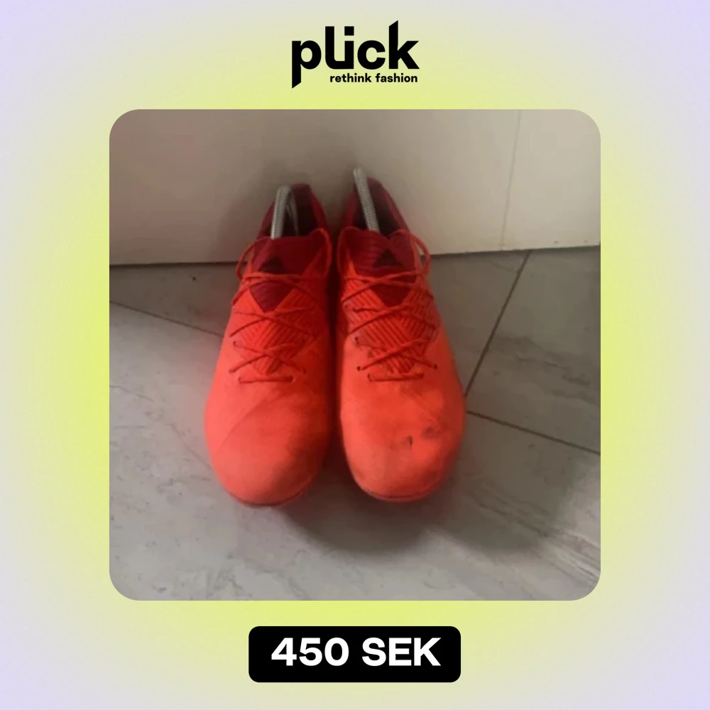 Säljer ett par röda Adidas Nemeziz fotbollsskor. De har en cool design med svarta detaljer och snörning. Skorna är i välanvänt skick men fortfarande grymma för spel på planen. Perfekta för dig som älskar att dominera matchen!