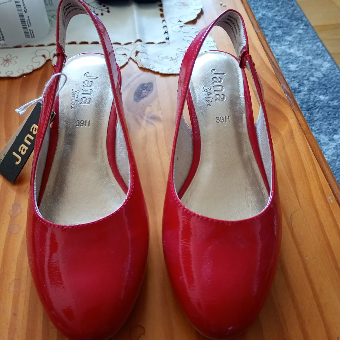 Helt nya och oanvända röda lackpumps i stl 39 av märket Jaana.