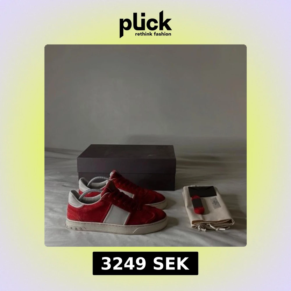Snygga röda Valentino Flycrews sneakers med vita detaljer och snörning. Skorna är tillverkade i mocka. Det medföljer skokartong, dustbags, extra skosnören, och även en informations bok om skorna. Två nittar saknas sammanlagt men gör ingen stor skillnad på skorna, storlek 41 men passar även en och en halv storlek större. Perfekta att använda för att skapa en stilren Outfit. Mvh