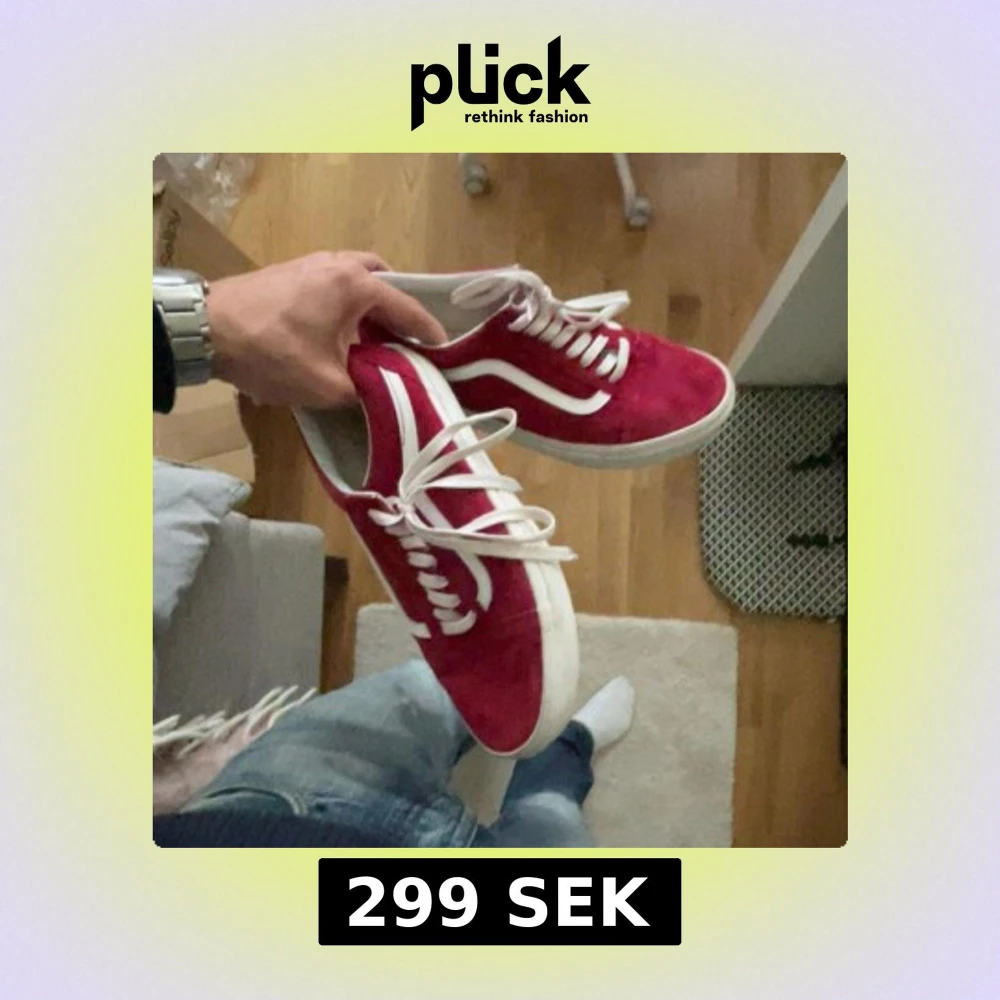 Säljer ett par snygga röda Vans sneakers med klassisk vit sula och vit sidostripes. Skorna har rund tå, platt sula och är tillverkade i mocka med vita snören. Står 41 men dessa är mindre i storleken skulle jag påstå, priset ej hugget i sten!