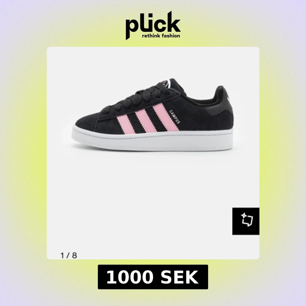 Svarta Adidas Campus sneakers med klassiska tre rosa ränder på sidan och vit sula. Nyskick då jag använt dem endast runt 5 ggr. Säljer då jag köpt andra skor jag vill använda. Kontakta för fler bilder och de är köpta från Zalando för ca 1200