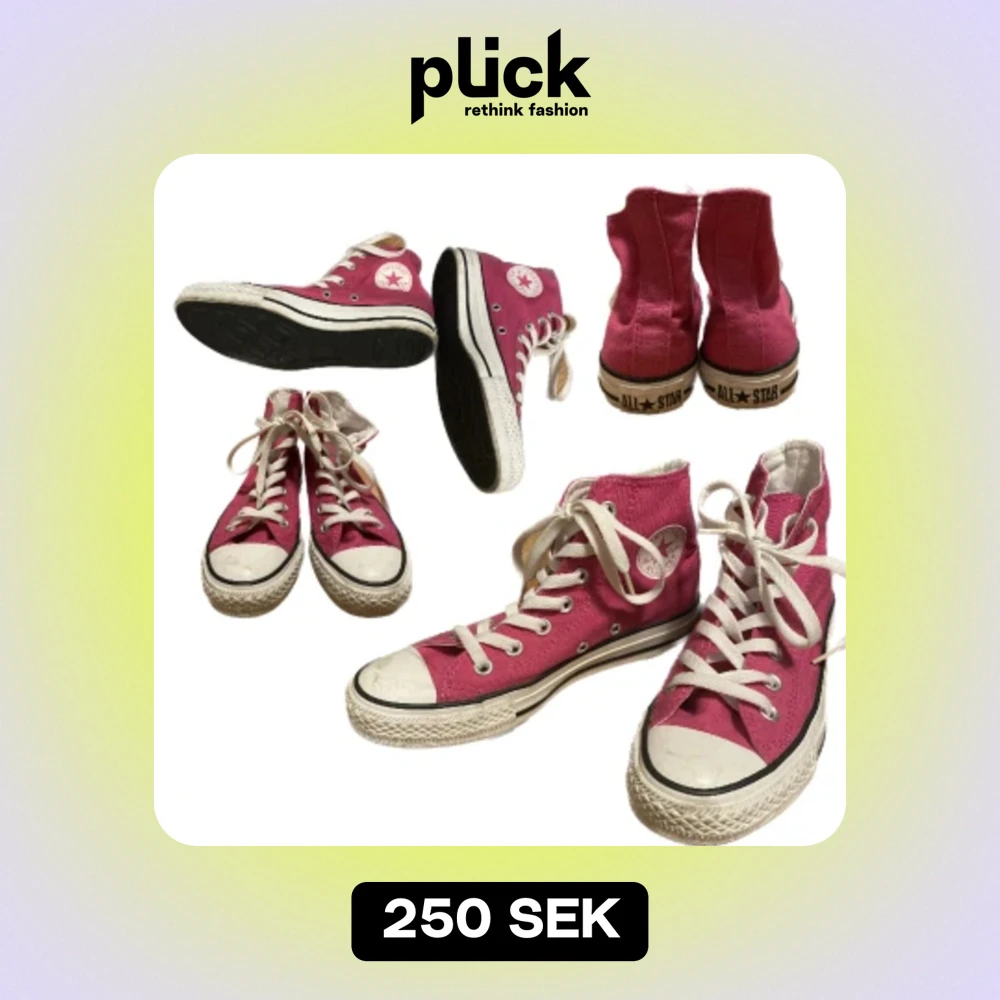 Snygga rosa Converse, knappt använda så i bra skick! Några missfärgningar på det vita, men skulle ändå vilja påstå att det blir som nya efter en tvätt :)!