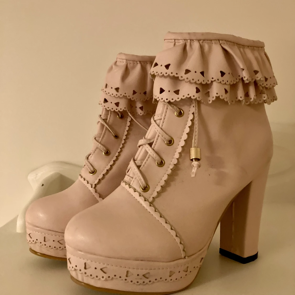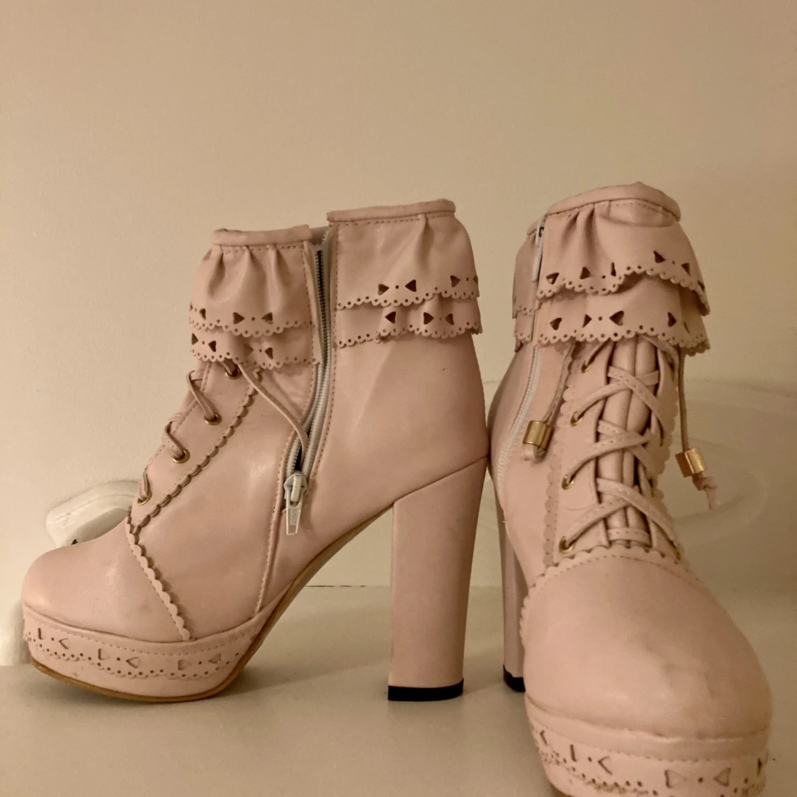 Ljusrosa platåskor / boots i gyarustil 💖 Storlek 38 💖 Varsamt använda men har några märken på tårna.