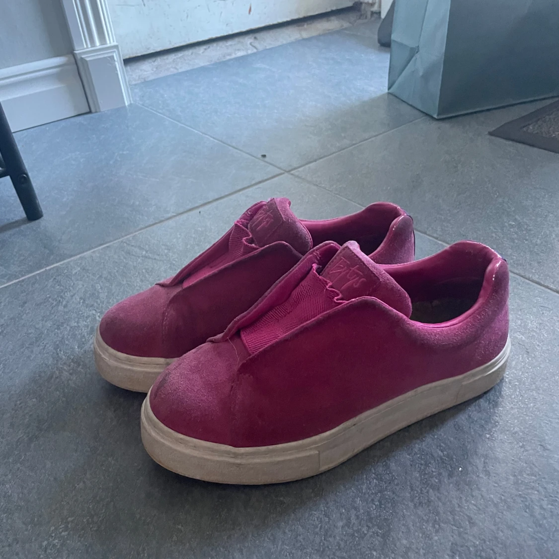 Rosa eytys som inte säljs längre, inga defekter men ser lite slitna ut. Har tyvärr inget kit för att rengöra mocka. Säljer då de är för stora för mig, köpta på plick. Har tyvärr inte kartongen kvar men har dustbagen som jag såklart postar dom i