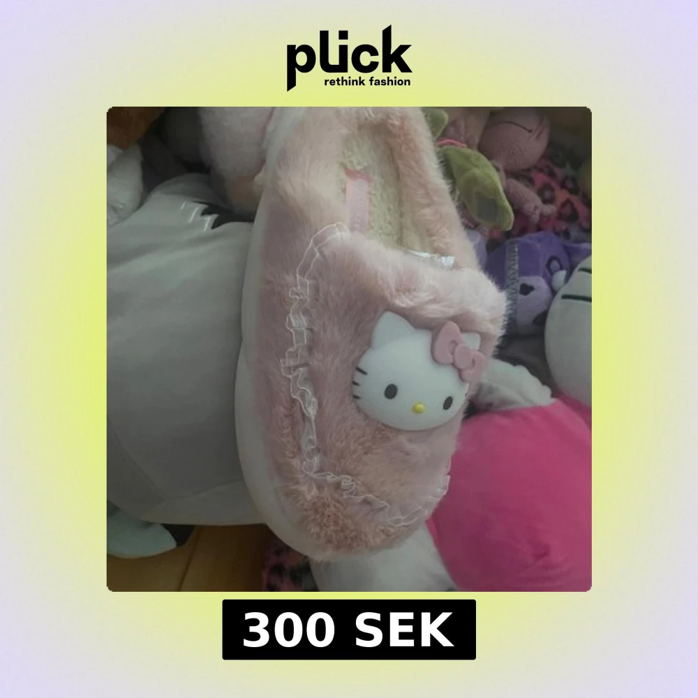 Jag köpte domhär för ett tag sen men dom är tyvärr för smà, jag har använt dom en gảng för att prova dom men dom satt inte bra pa eftersom jag har storlek 42-43 och dom är i 40-41, Supergulliga rosa tofflor med fluffig yta och Hello Kitty-ansikte framtill. Tofflorna har volangdetaljer i vitt och är fodrade med mjukt material för extra komfort. Perfekta för dig som älskar söta accessoarer och vill ha något mysigt på fötterna hemma.