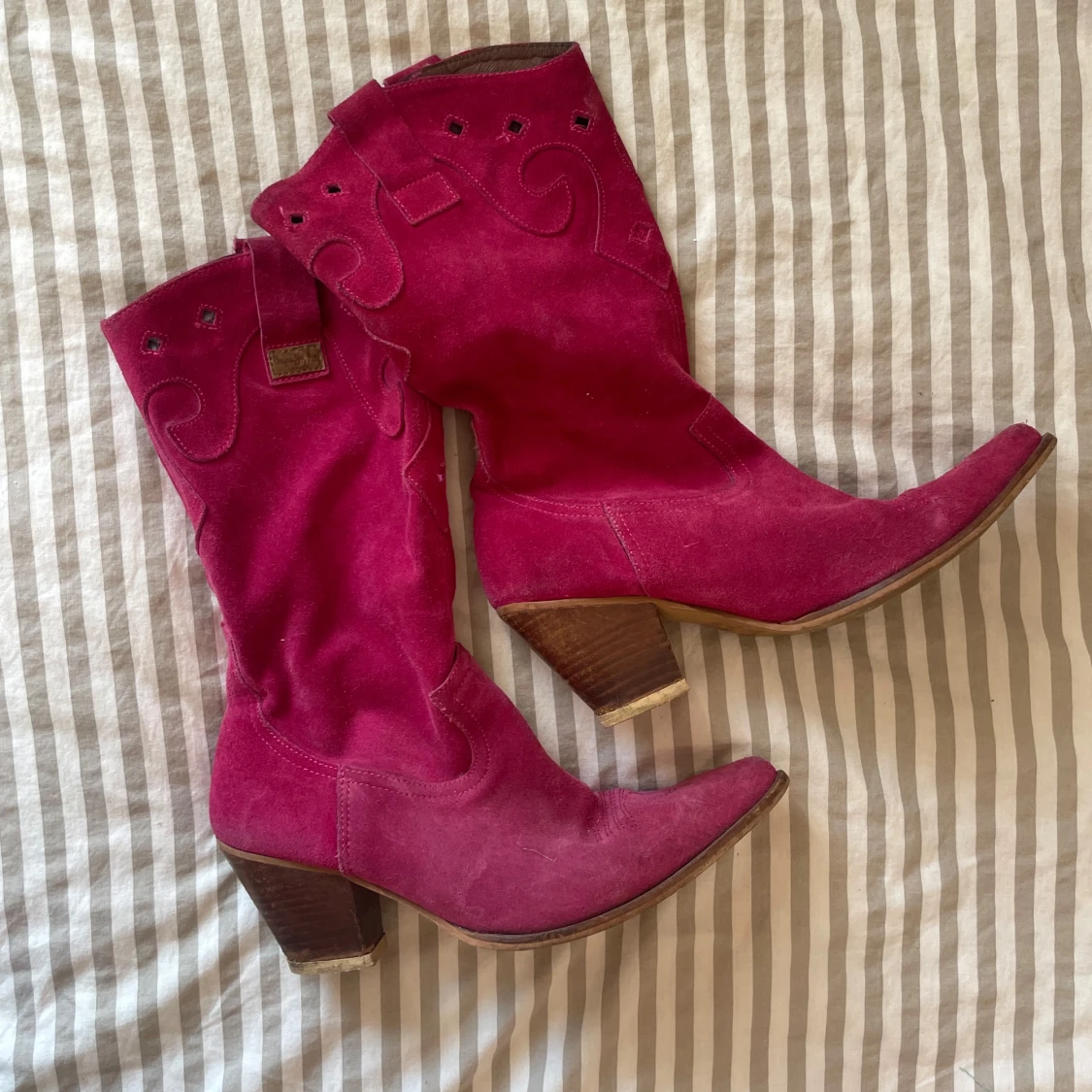 Säljer ett par snygga rosa cowboy stövlar i mocka från Pepe Jeans 🎀