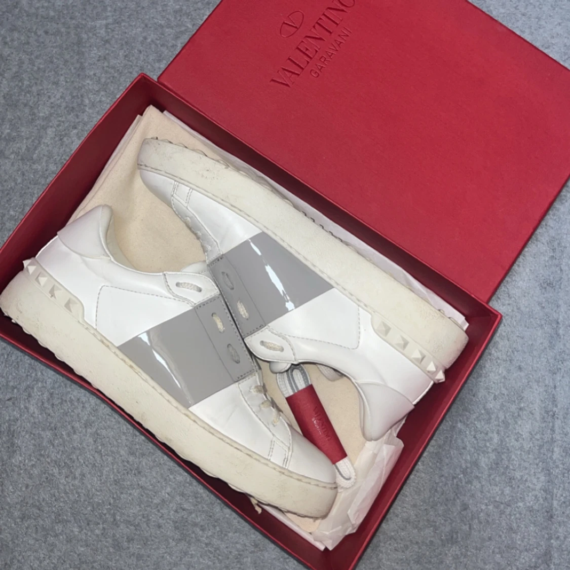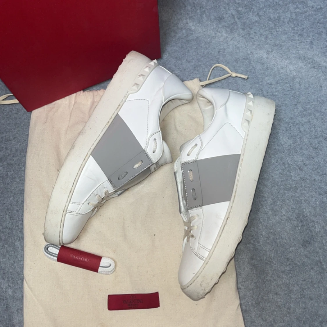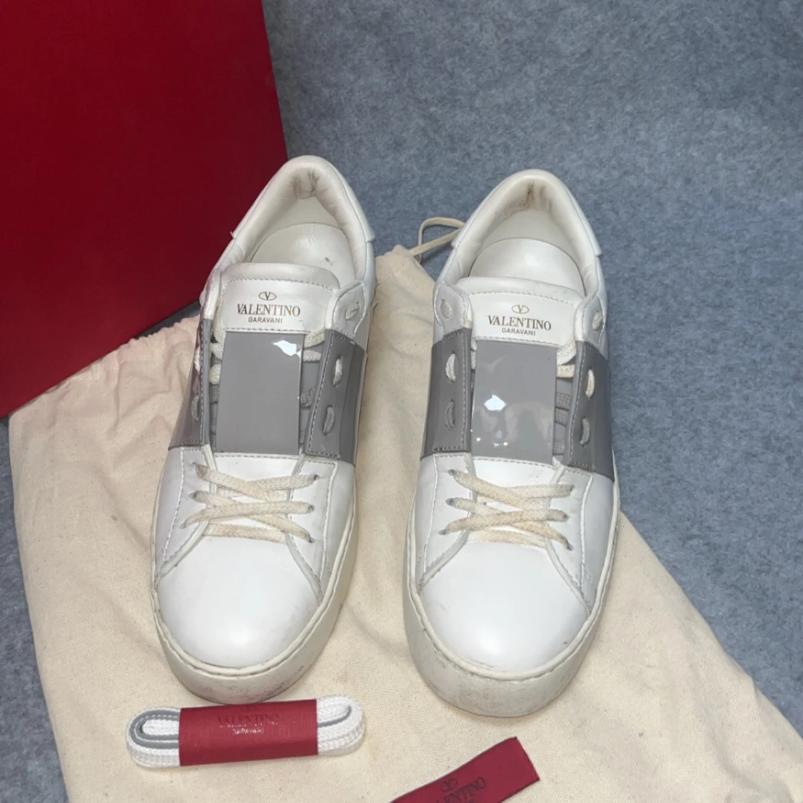 Valentino open skor | Sko snöret är grått på en del så att det bländar in, men jag har knutit lite fel så det är vitt på bilderna, men de är ba att lossa upp snörena lite så matchar det | 100% äkta med ingående äkthetsgaranti ✔️| Vädligt snygg färg som förbättrar alla outfits | Vädligt eftertraktade | Extremt bra skick, skorna behöver endast en tvätt. | Allt ingår! | Fraktas samma dag 🚚 📦 | Kontakta vid fler frågor eller funderingar ✔️