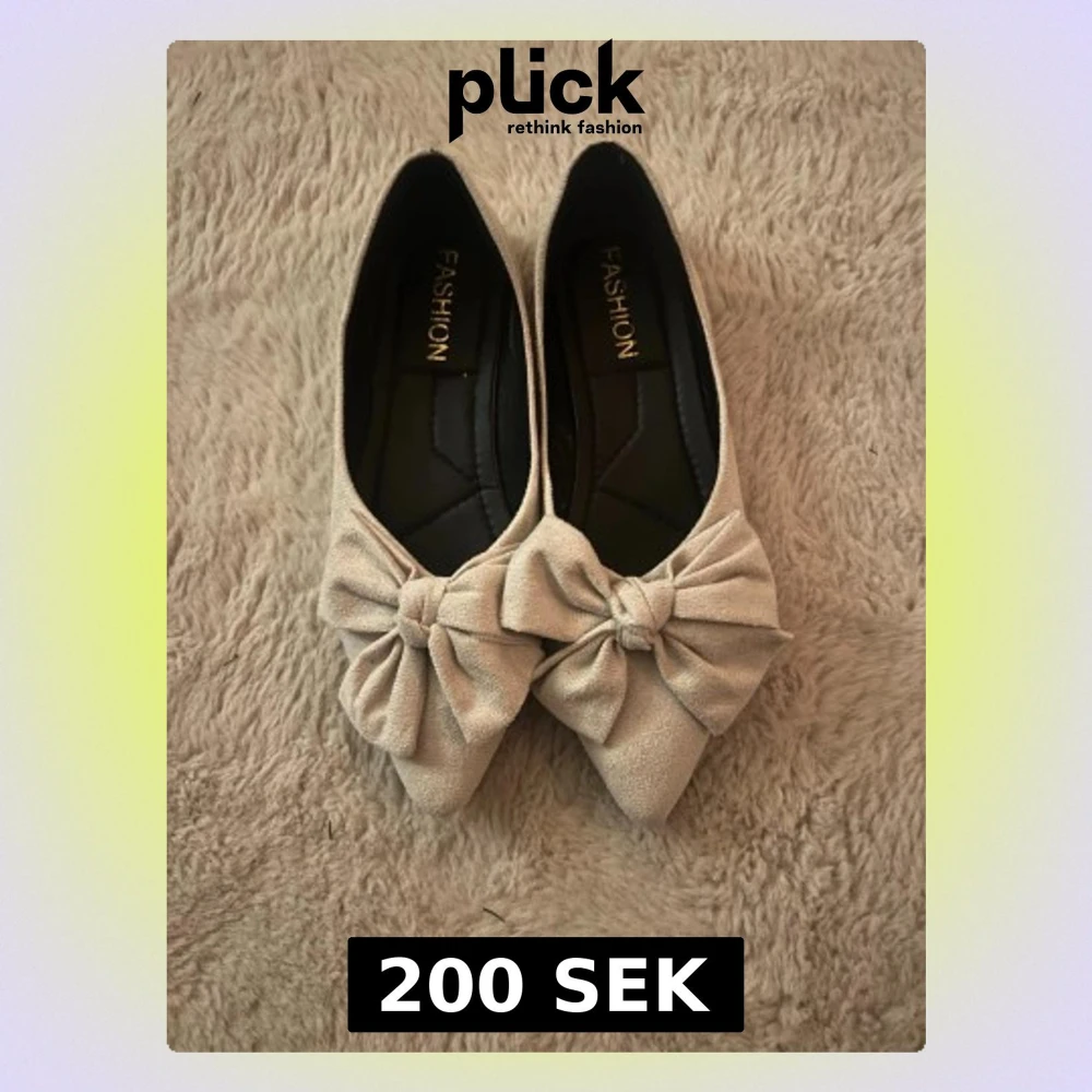 Snygga beige ballerinaskor från Fashion med spetsig tå och stor rosett framtill. Supersöta och stilrena för dig som gillar detaljer.