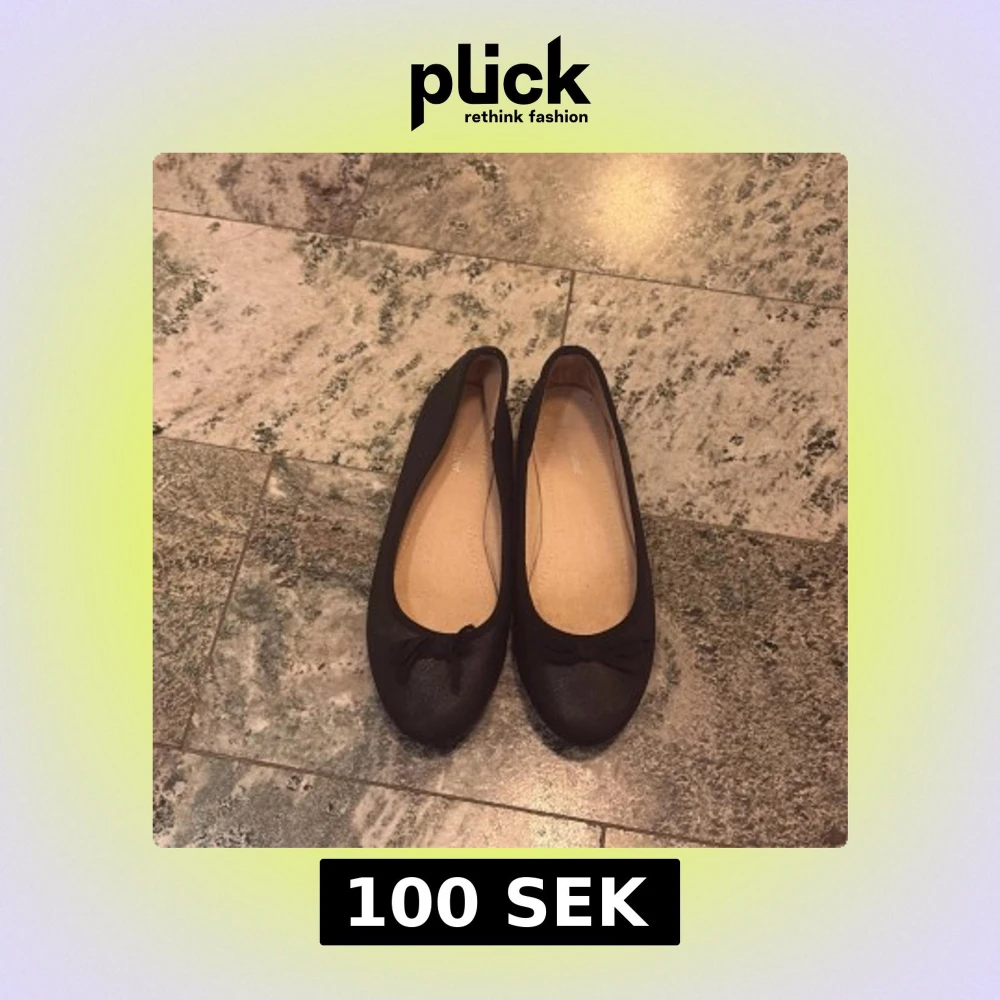 Säljer ett par klassiska svarta ballerinaskor med liten rosett framtill. 💗💗