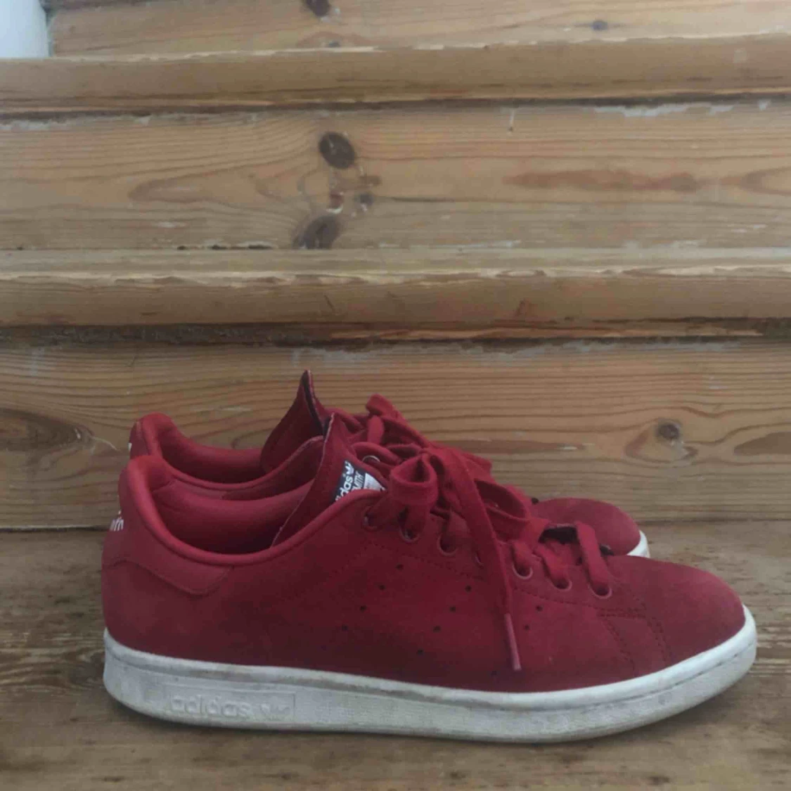 Fett coola stan Smith i röd mocka. De är använda men inte särskilt utslitna, syns lite på sista bilden. Man kan enkelt fräscha till mockan lite med en mockaborste.