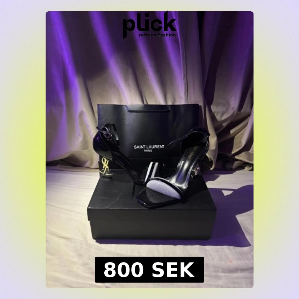 Säljer ett par svarta lyxiga Saint Laurent klackar med den ikoniska ysl loggan som klack. Skorna är helt nya och kommer med lådan samt påsen som syns på bilden. Säljer dem pga dem inte passar mig. Obs. det är inte orginala ysl klackar.
