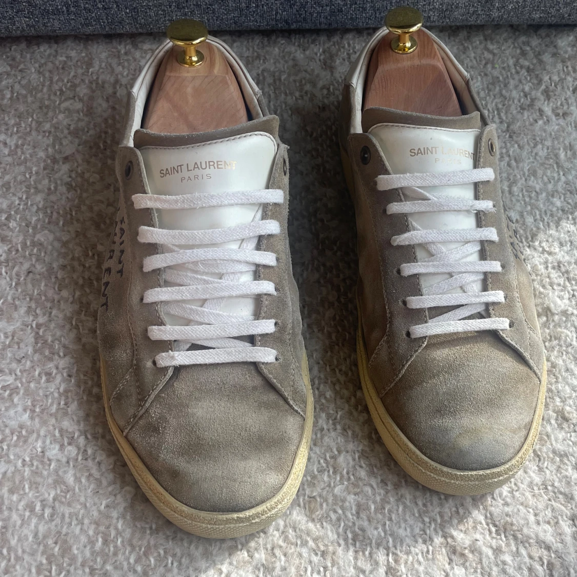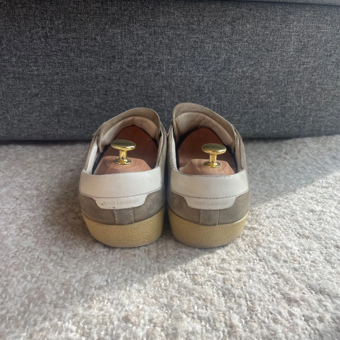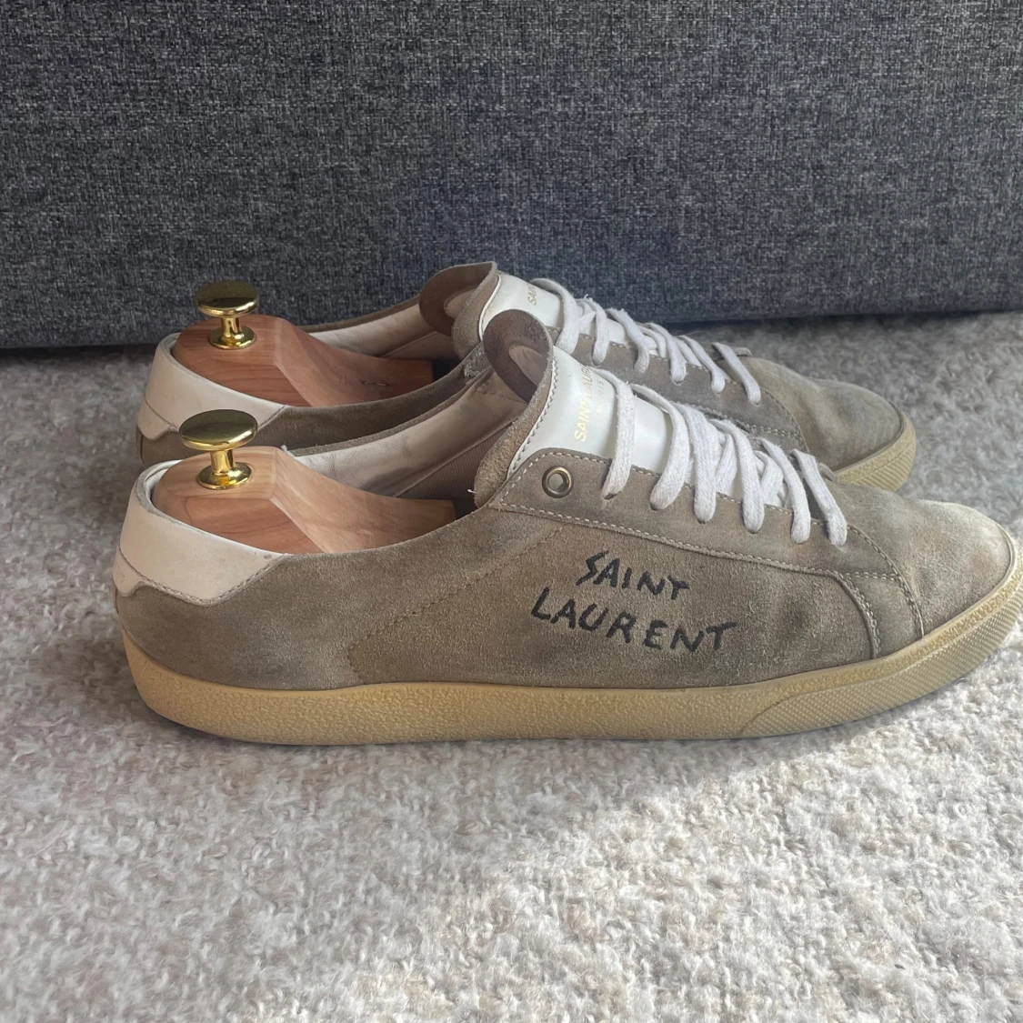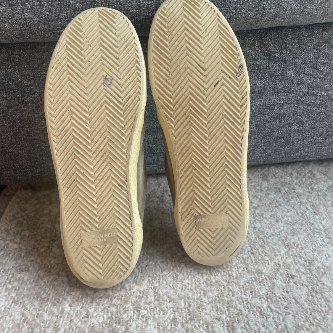 Hej, säljer nu dessa Saint Laurent skor. Okej skick, går nog att tvätta de. Väldigt sköna skor! Garanterad äkthet. Storleken är 43. Förekommer mindre hål bakre undersula. Hör av dig vid eventuella frågor.