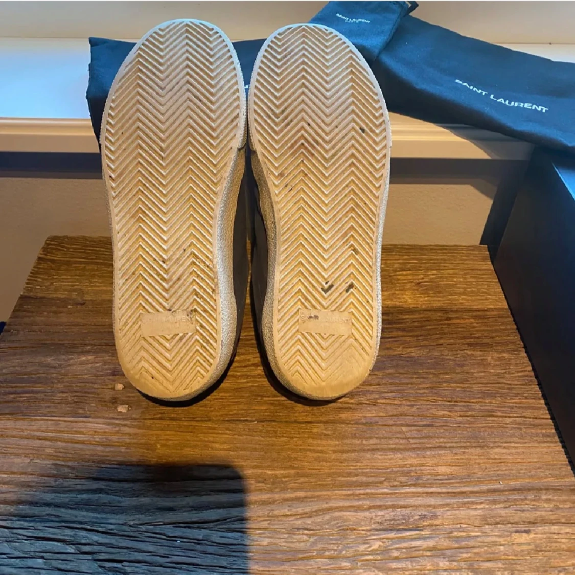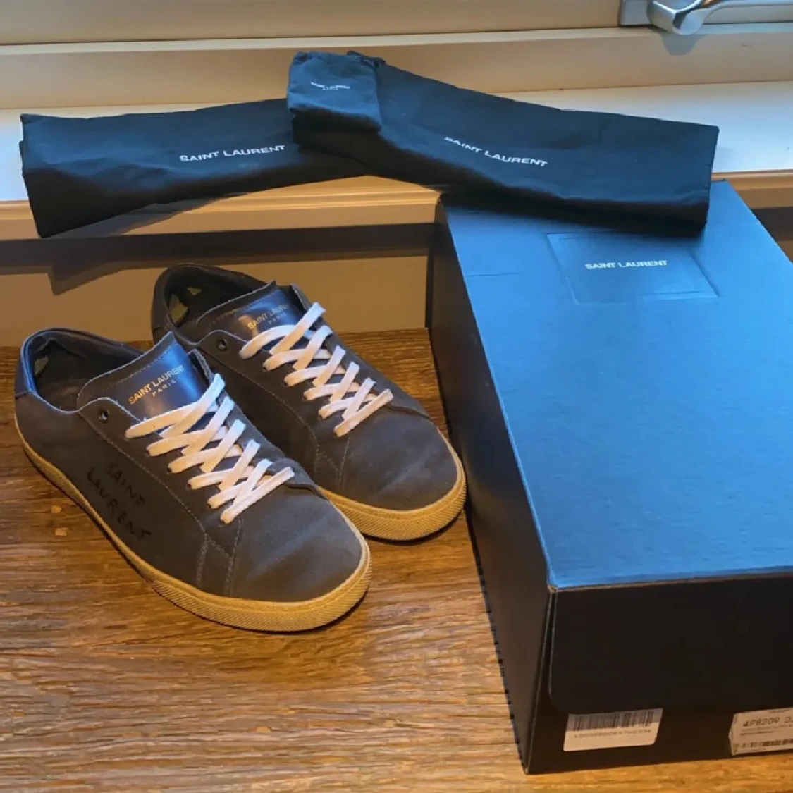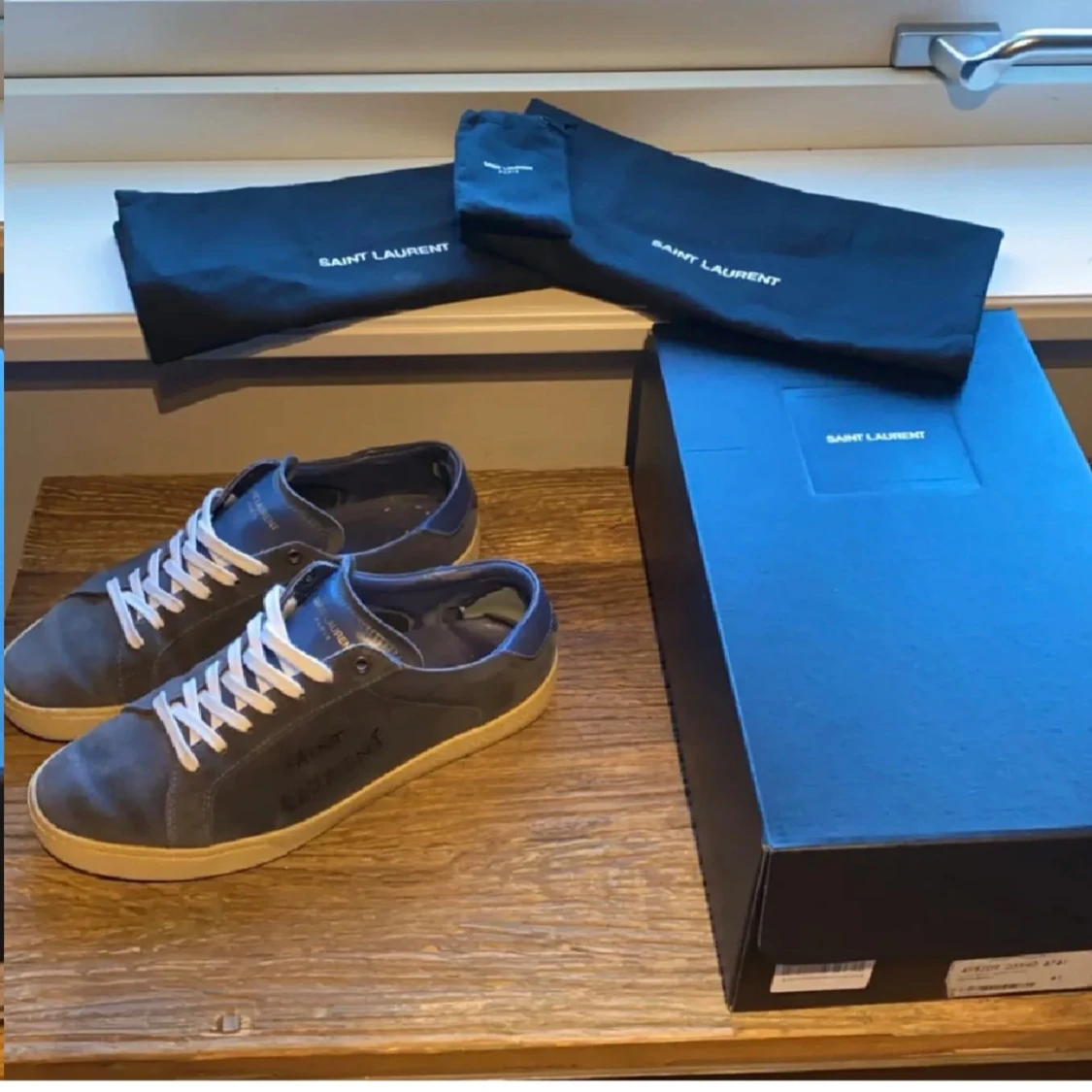 Hej! Säljer mina Saint Laurent skor i storlek 41-42. Allt på bilderna ingår. Dem är i ett bra skick, lite slitna innuti men går att fixa med lapp över. Skriv om man vill va mer bilder. Nypris 6000