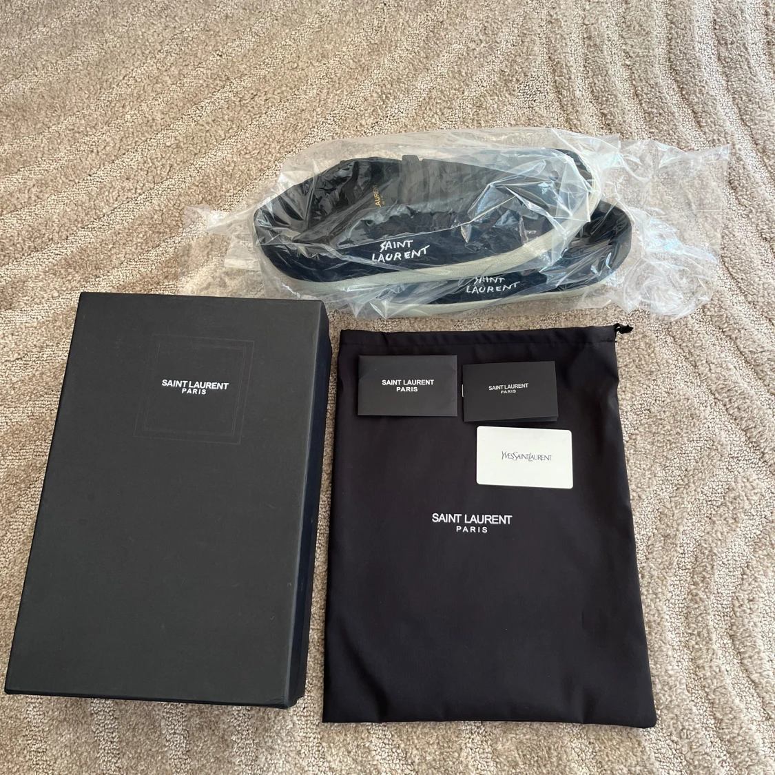 Saint Laurent skor i storlek 42/43, skorna är helt nya och har aldrig andvänts. Box och dustbag✅tveka inte på att höra av dig vi minsta fundering😁