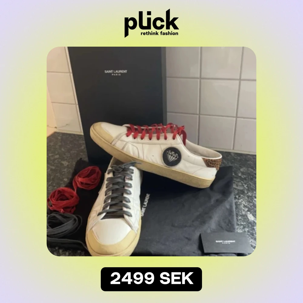 Säljer dessa feta Saint Laurent skor i en sällsynt modell. Storlek 44,5. Skicket är väldigt bra (avgör själv) Allt OG ingår,extra snören, box och dustbags. (Slitningarna tillhör designen och ska vara så!)Hör av er vid frågor eller funderingar🌟Äkta!