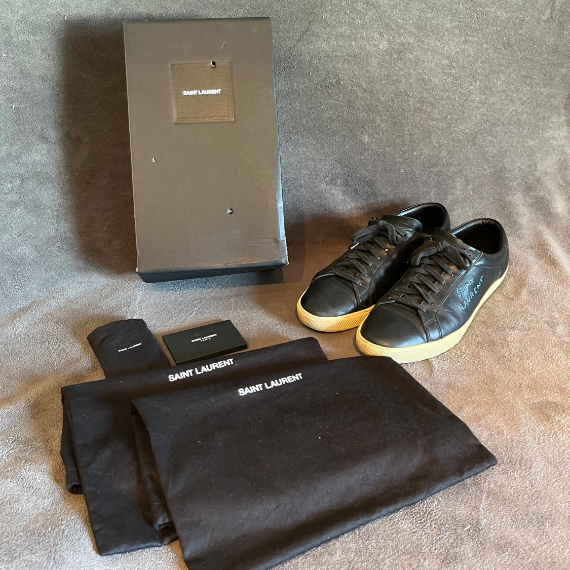 Snygga skor från Saint Laurent | Storlek: 46 | Allt og finns med | Skorna är i bra skick | Färg: Svart med blå text | Mer bilder kan fås | Skriv vid frågor! |