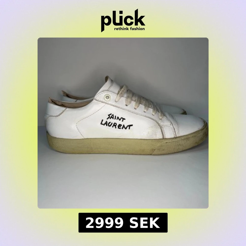 Säljer ett par vita Saint Laurent sneakers. Är sliten på insidan men ser ny ut på utsidan. Skriv i dm om du har frågor. Man får också låda och lite andra saker. Priset går alltid att diskuteras🤗