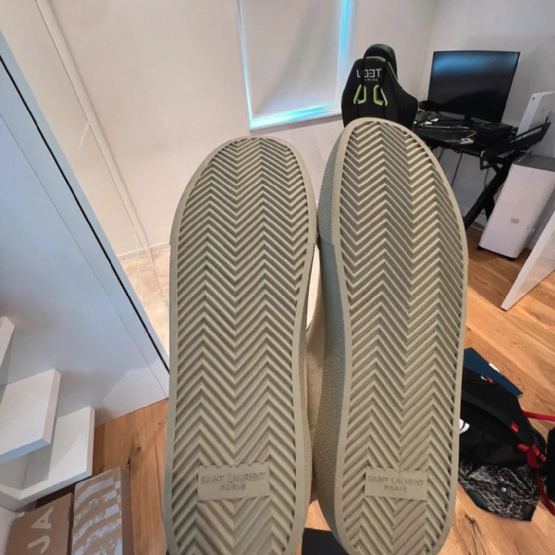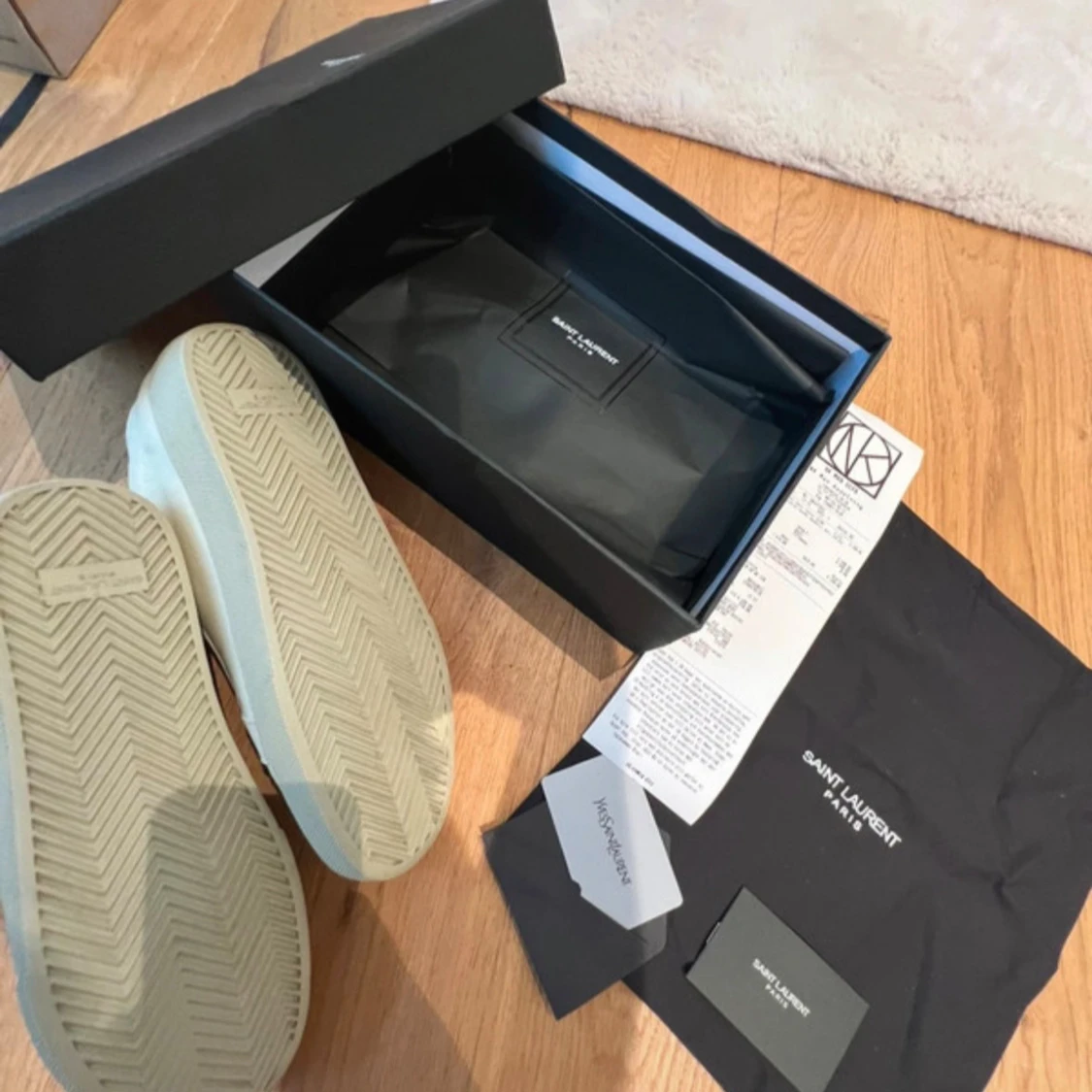 Snygga vita sneakers från Saint Laurent med handskriven logga på sidan. Skorna har rund tå, snörning och är gjorda i canvas med detaljer i skinn. Klassisk platt sula och stilren design som passar till allt. Kommer med originalkartong och dustbag.