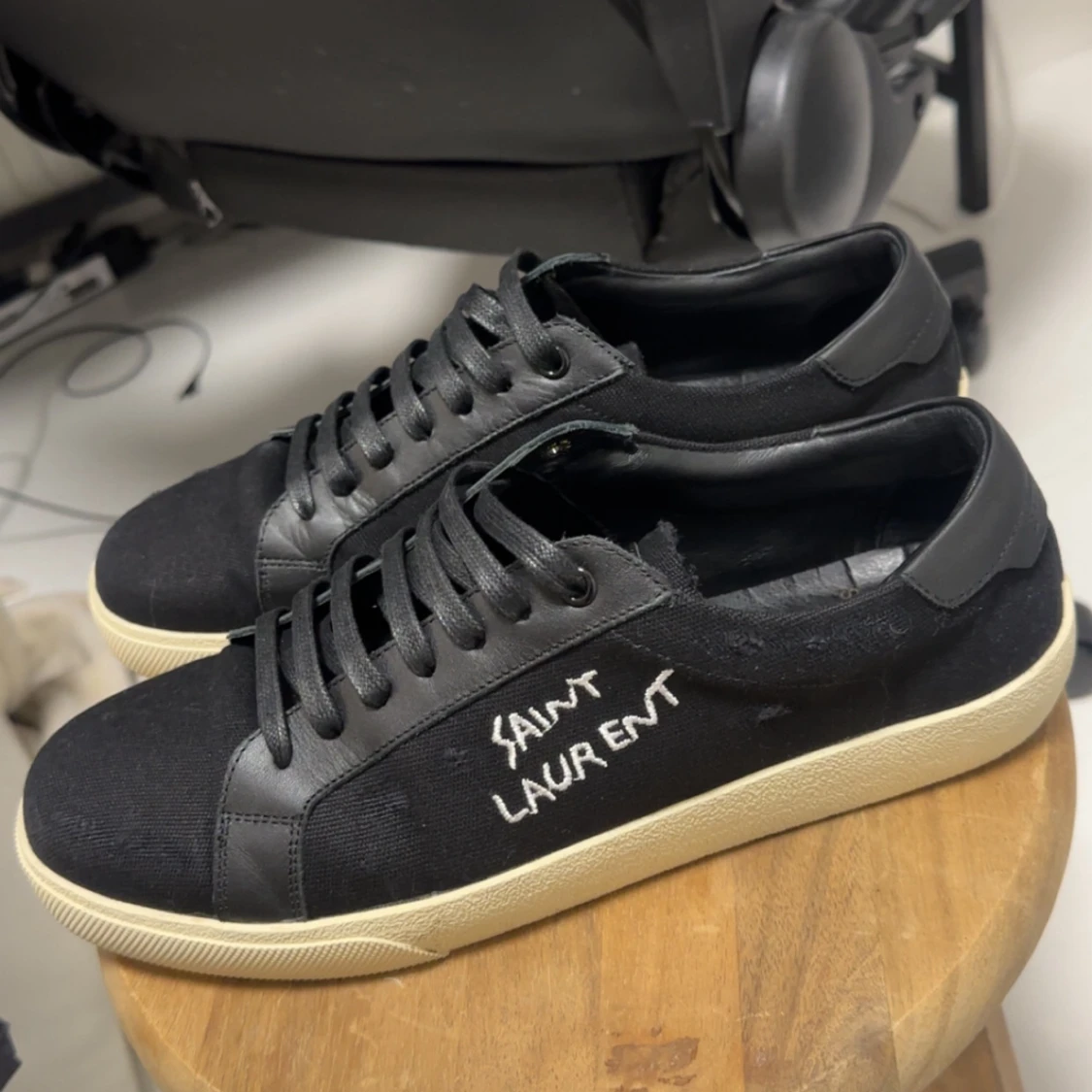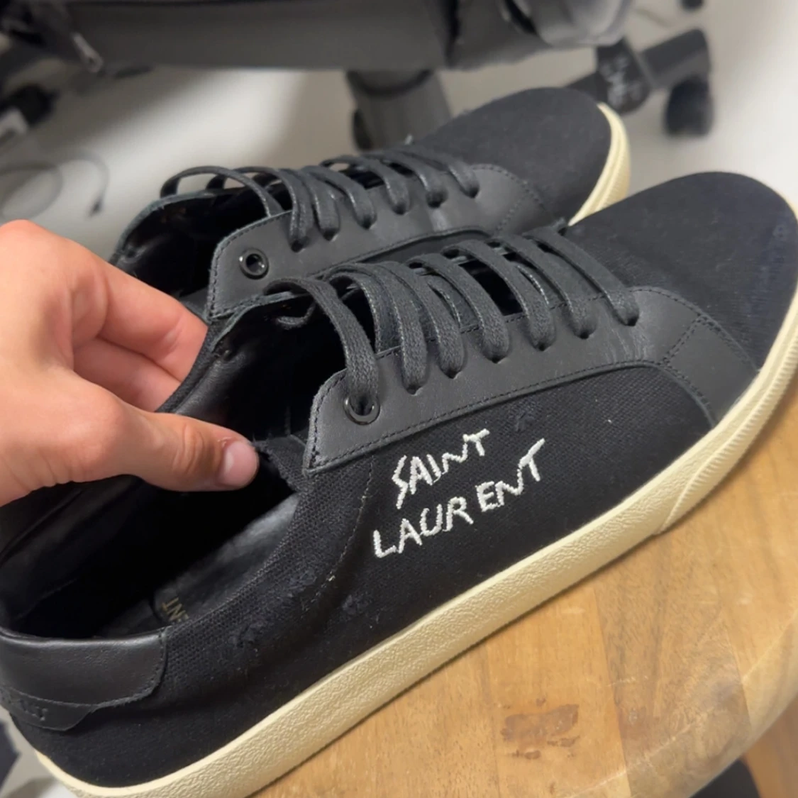 Svarta saint Laurent skor, Nypris 9000:- Mitt pris 3299:- Box, skopåse, certifikat med kommer. Skick 9/10 Inga defekter bara smutsiga på sulan men går att tvätt bort innan jag skickar. Skriv vid minsta fundering, hälsningar Love.