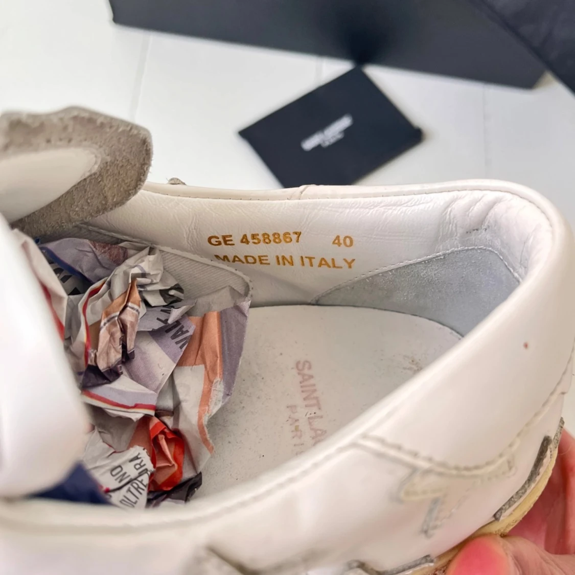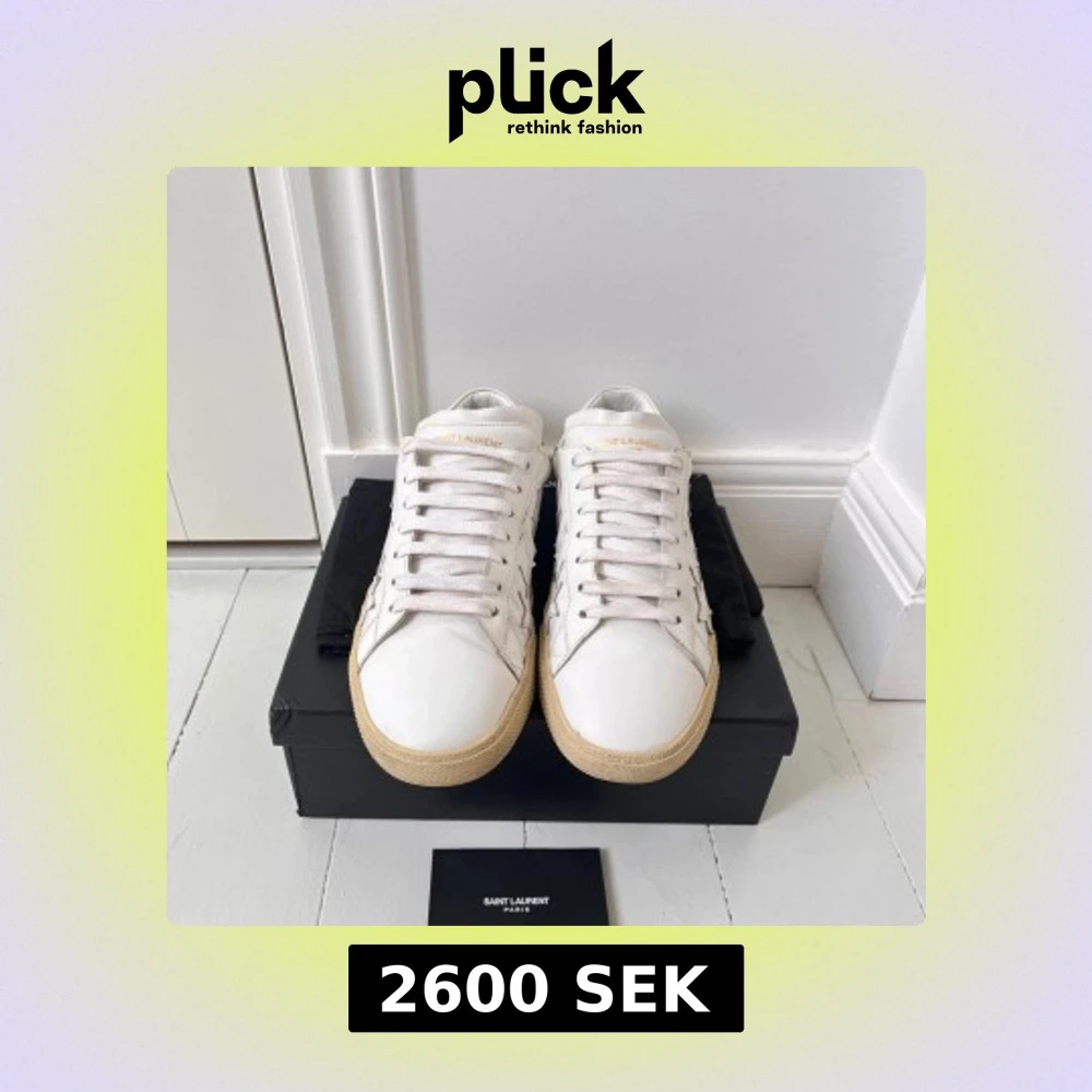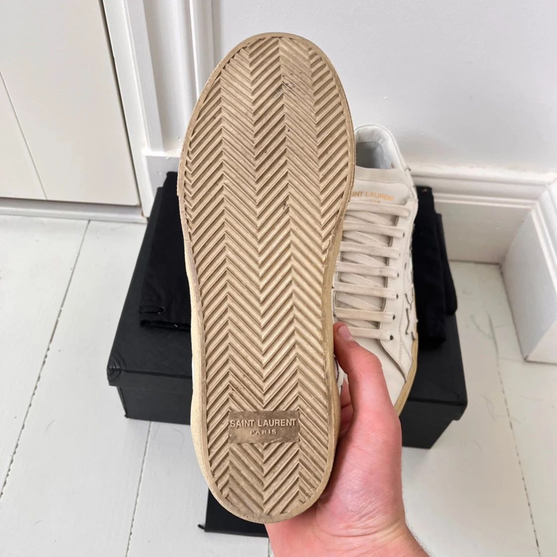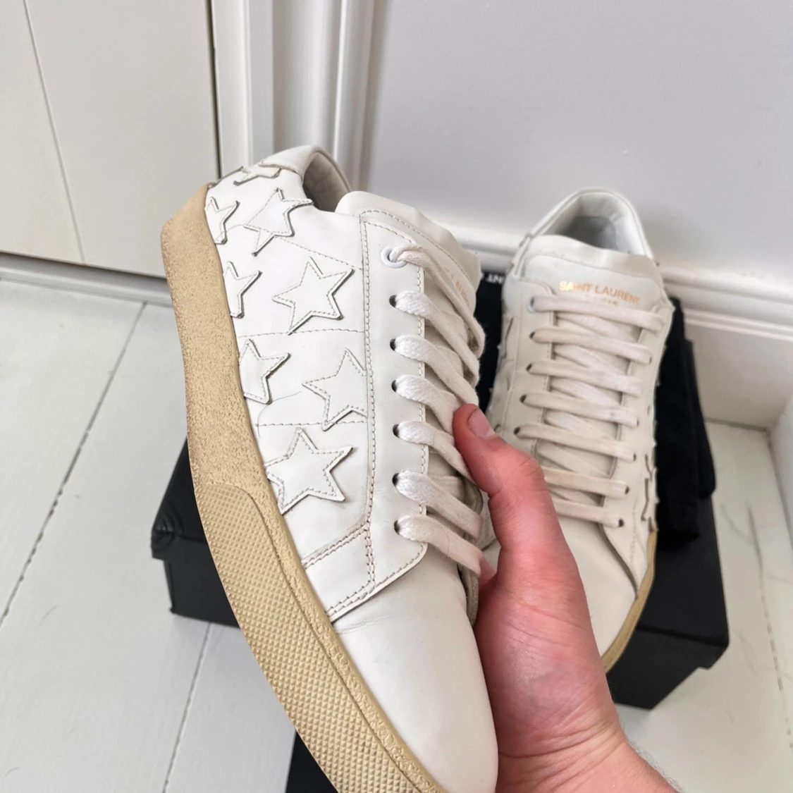 ÄKTA! box och Dustbag ingår! Riktigt snygga Saint Laurent skor med vita stjärnor. Enda defekten är att snörena är lite smutsiga. Nästan oanvända. Storlek 40 och rekommenderar för 40. Kom med frågor! Unisex, vet ej om det är orginal boxen…
