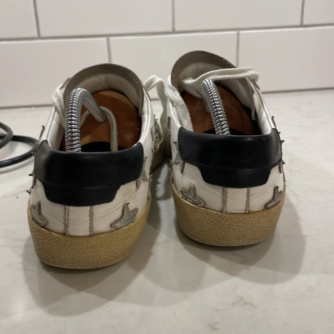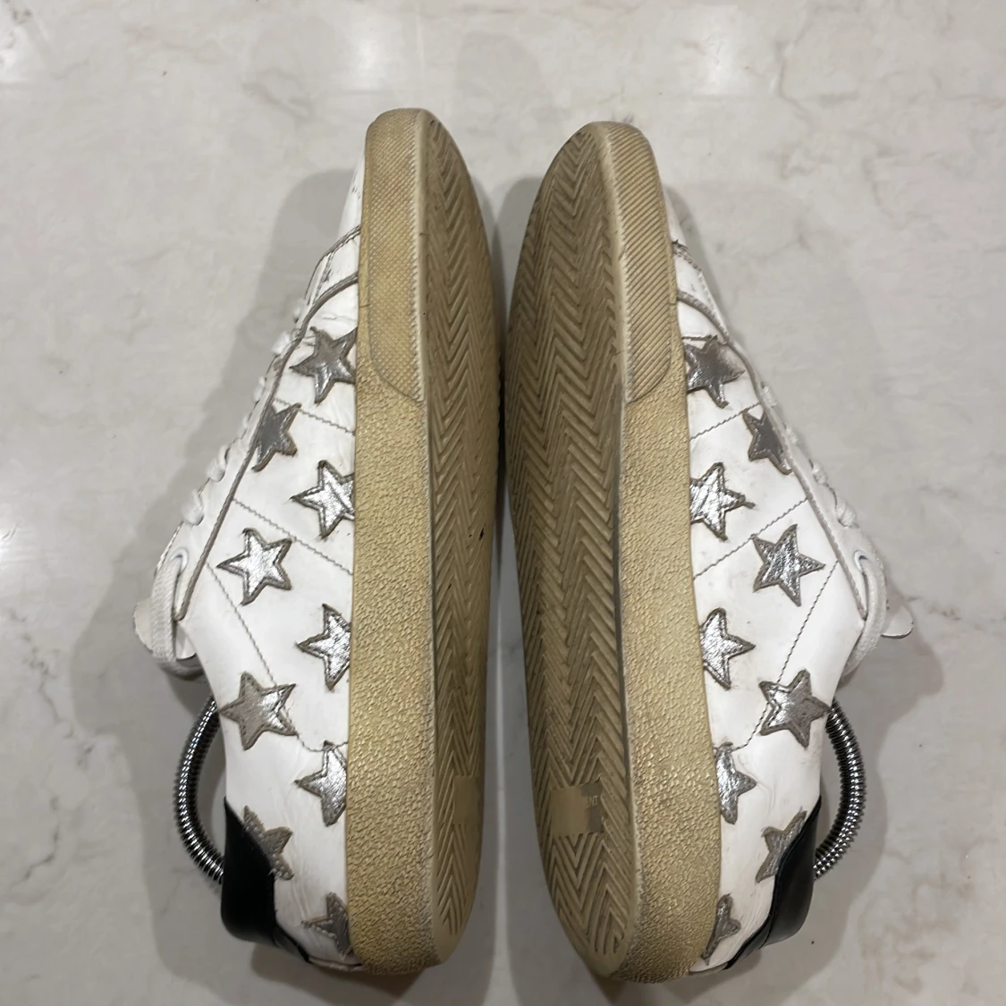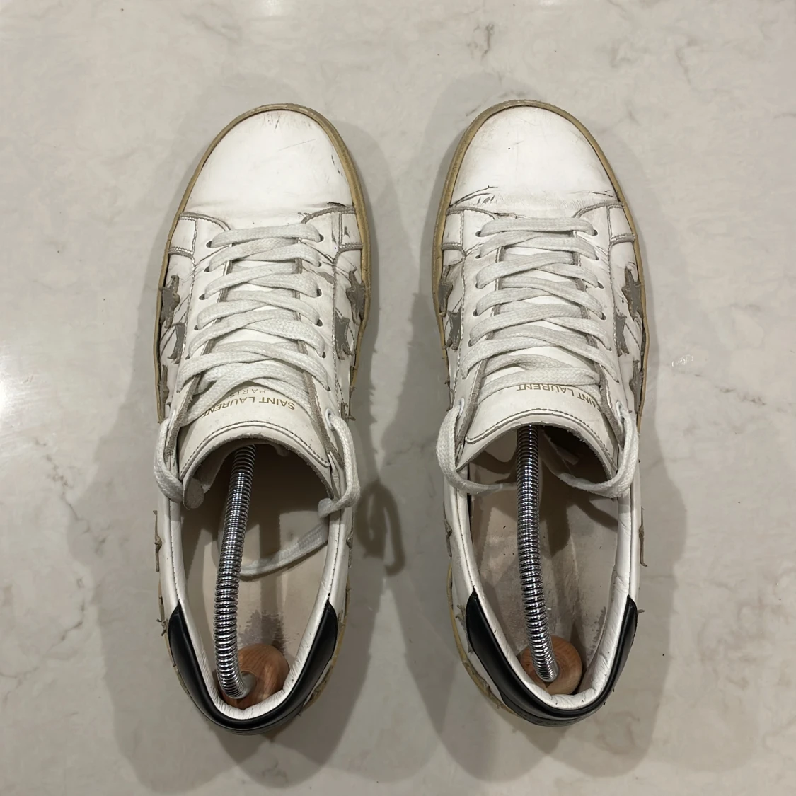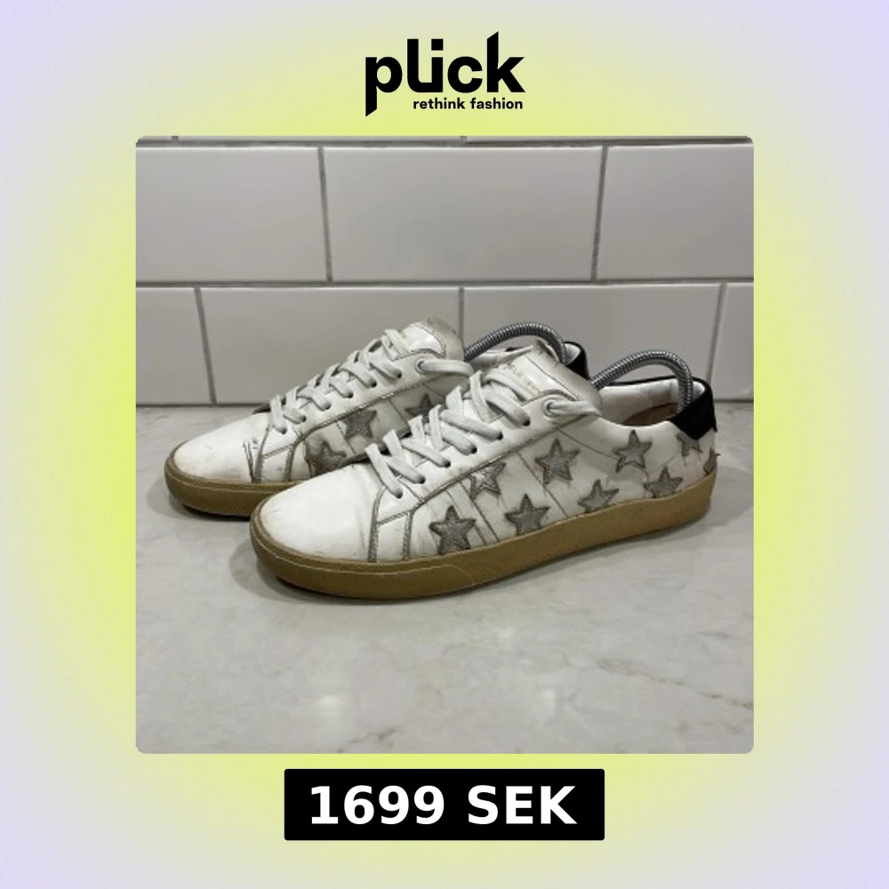 Tjena, säljer nu mina Ysl skor som nu har växt ur mig. Det är ett par riktigt schyssta sneakers som sitter perfekt på foten och är perfekta nu inför sommaren, är även lätta att styla. Skicket är bra men har tecken på användning. Dom ser mycket renare ut i verkligheten än på bild kan jag meddela.100% äkta. Endast skorna tillkommer. Vill helst inte gå ner i pris men kan tänka mig vid en snabb affär. Hör av dig för minsta tanke om skorna🤩🍾