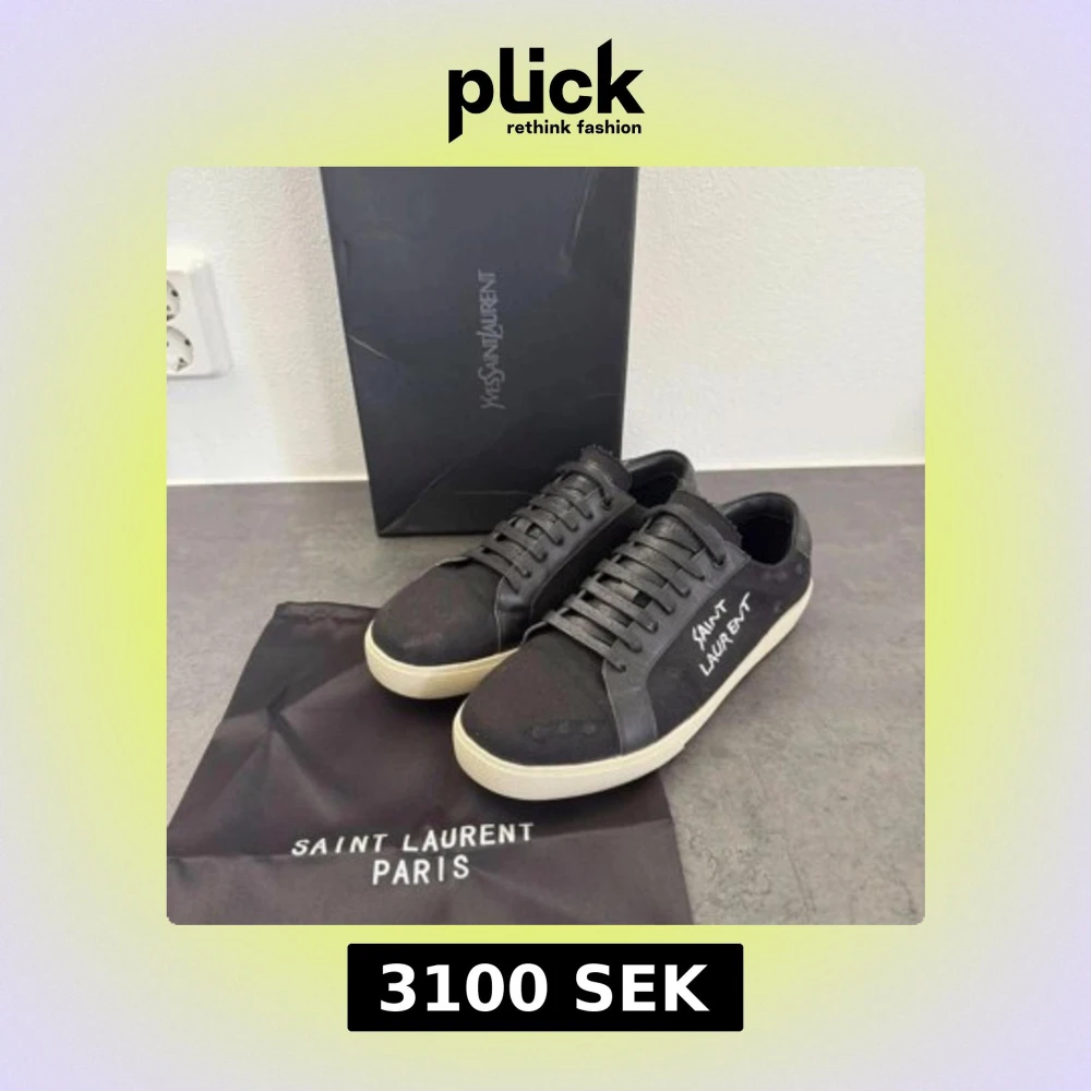 | Skor från Saint Laurent | Färg: Svart med vit text | Storlek: 43 | Box samt påse följer med vid köp | Skriv vid frågor | Pris kan diskuteras om du följer vårat konto samt snabb affär |