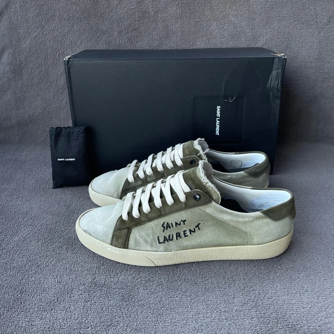 Väldigt eftertraktade saint laurent skor med ”vintage look” | skorna är använda men har fortfarande mycket kvar och ge | storlek 43 sitter aningen större | garanterat äkta ✅ | låda & extra snören medföljer vid köp