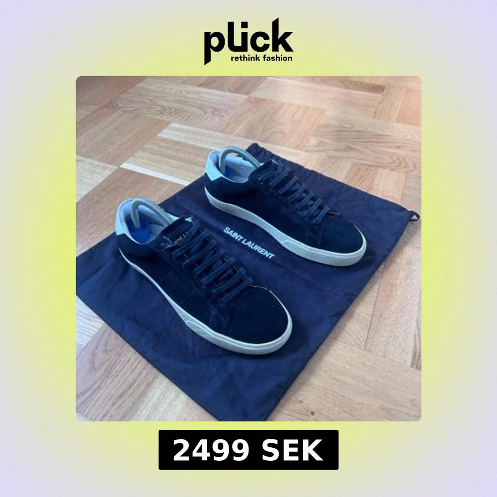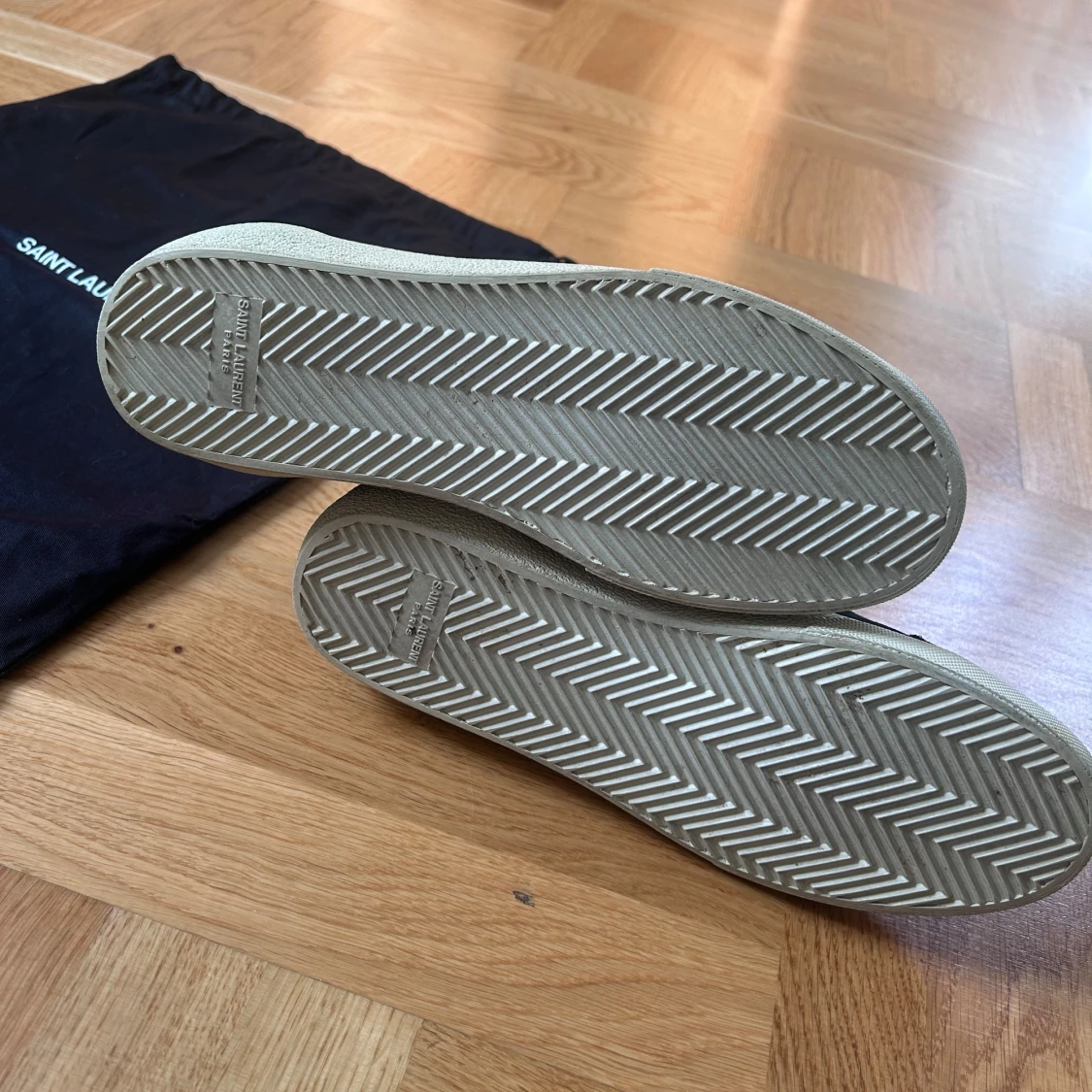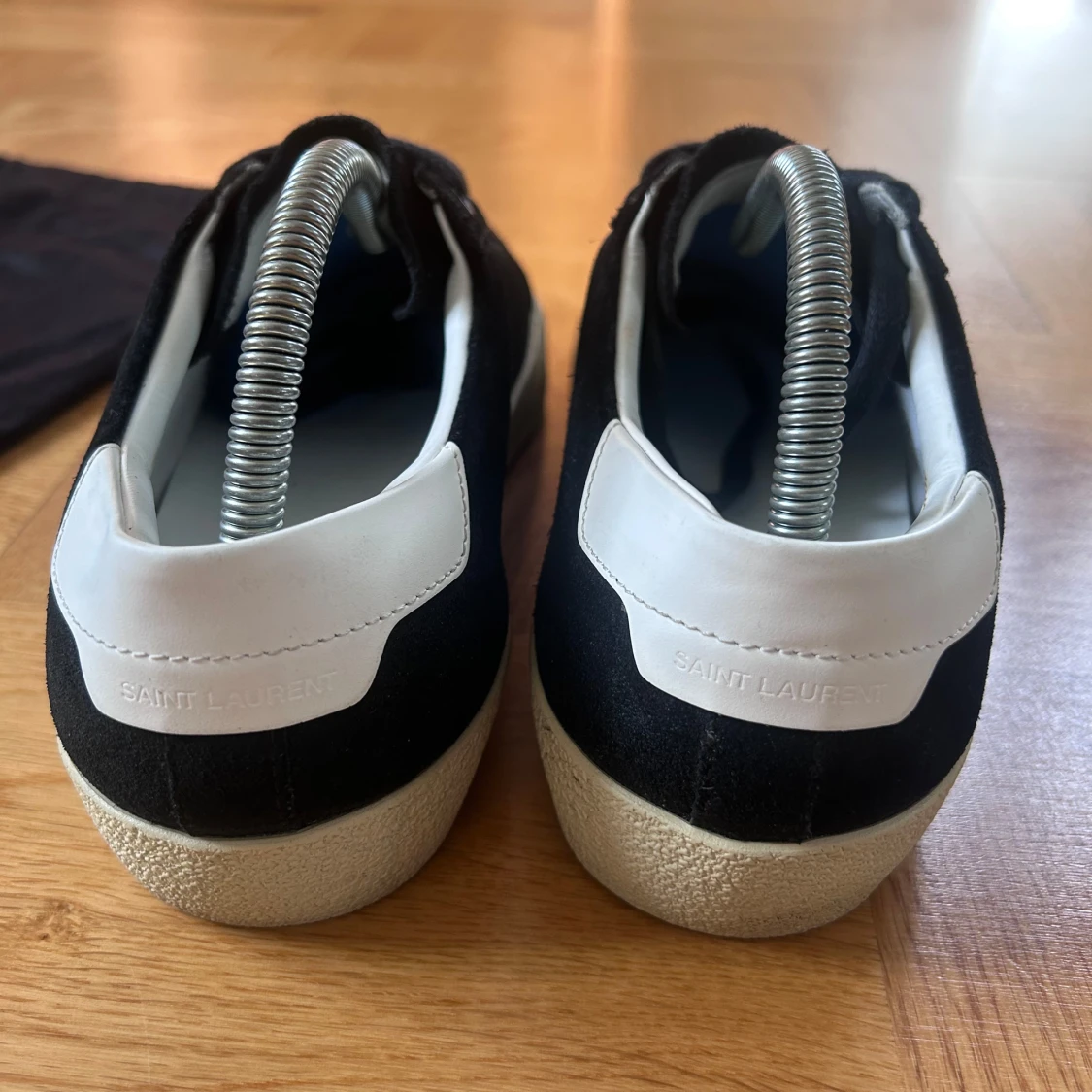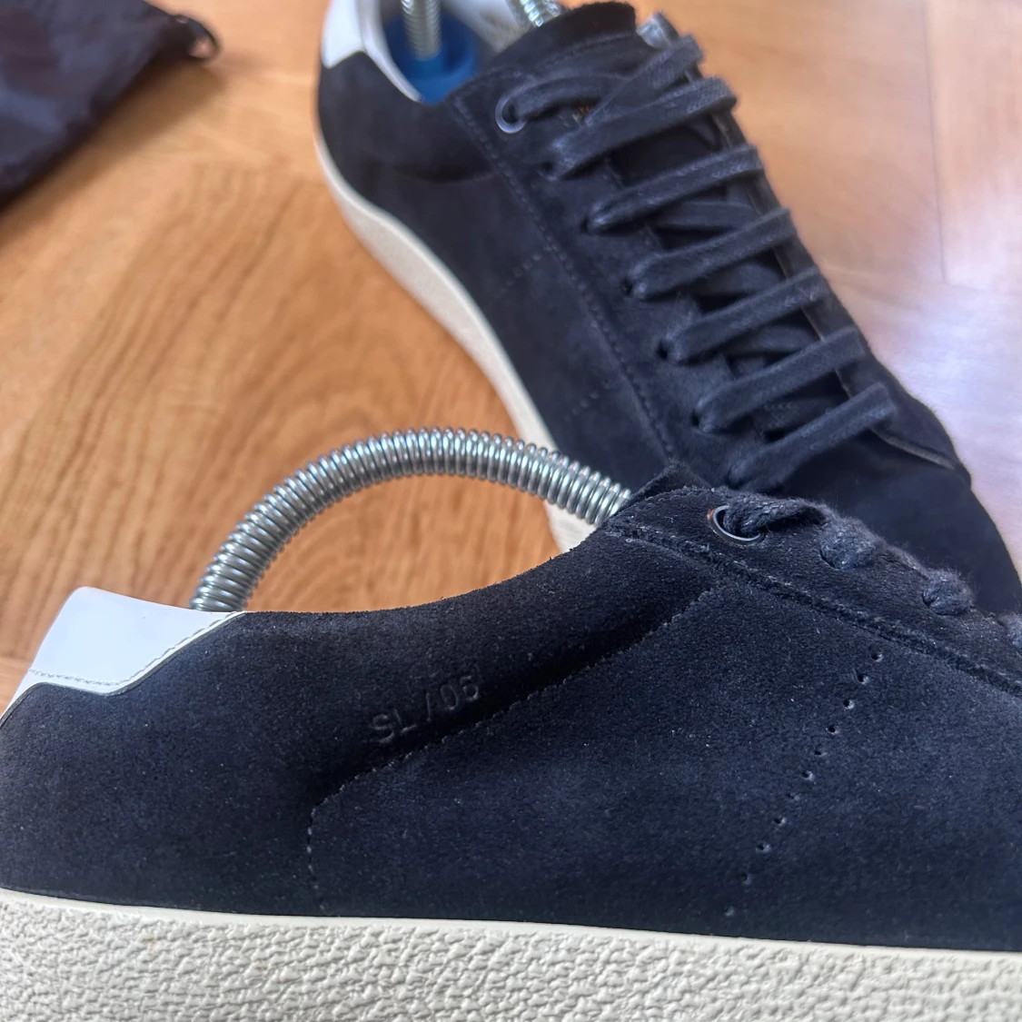 Svarta Saint Laurent SL/06 sneakers i mocka med vit häl flärp. Snygg minimalistisk design med diskret logga på sidan. Skorna är i 9,5/10 skick, inprincip nya utan box. Skorna är i storlek it 40 men passar 40-41,5. Riktigt sköna skor som går lätt under radarn. Hör av dig vid minsta intresse.