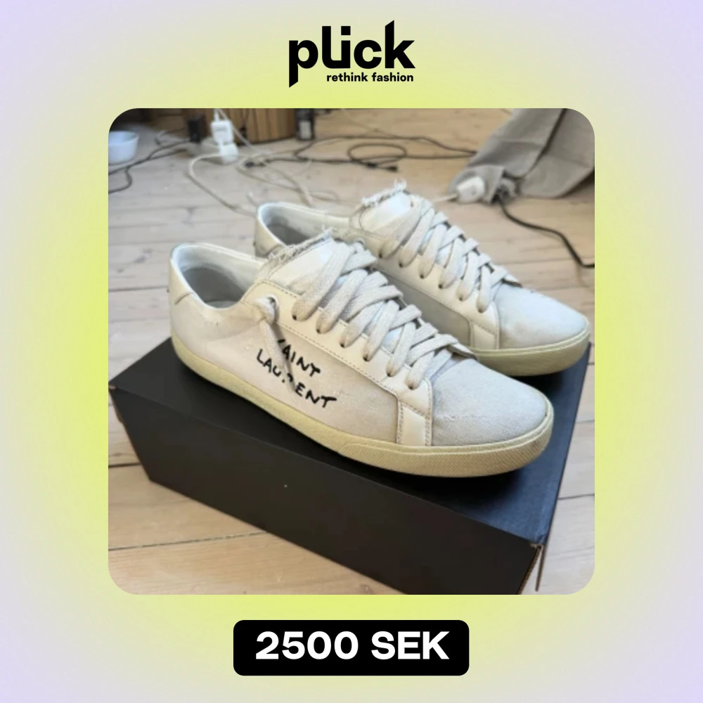 Säljer mina feta Saint Laurent sneakers som passar perfekt nu till sommaren. Säljes då dom inte används så mycket längre. Storlek 41, stora i storleken men passar bra på mig som har 42. Använda men i bra skick. Kan gå ner i pris vid snabb affär🤝